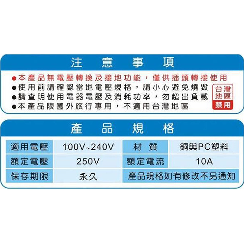 ※無電壓轉換功能,僅供插頭轉接使用