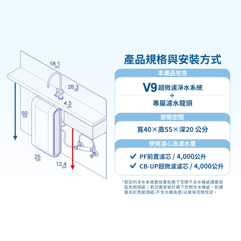 6. 水源選擇以自來水為主,其餘水源如山泉水.地下水須經過特別處理請勿安裝。