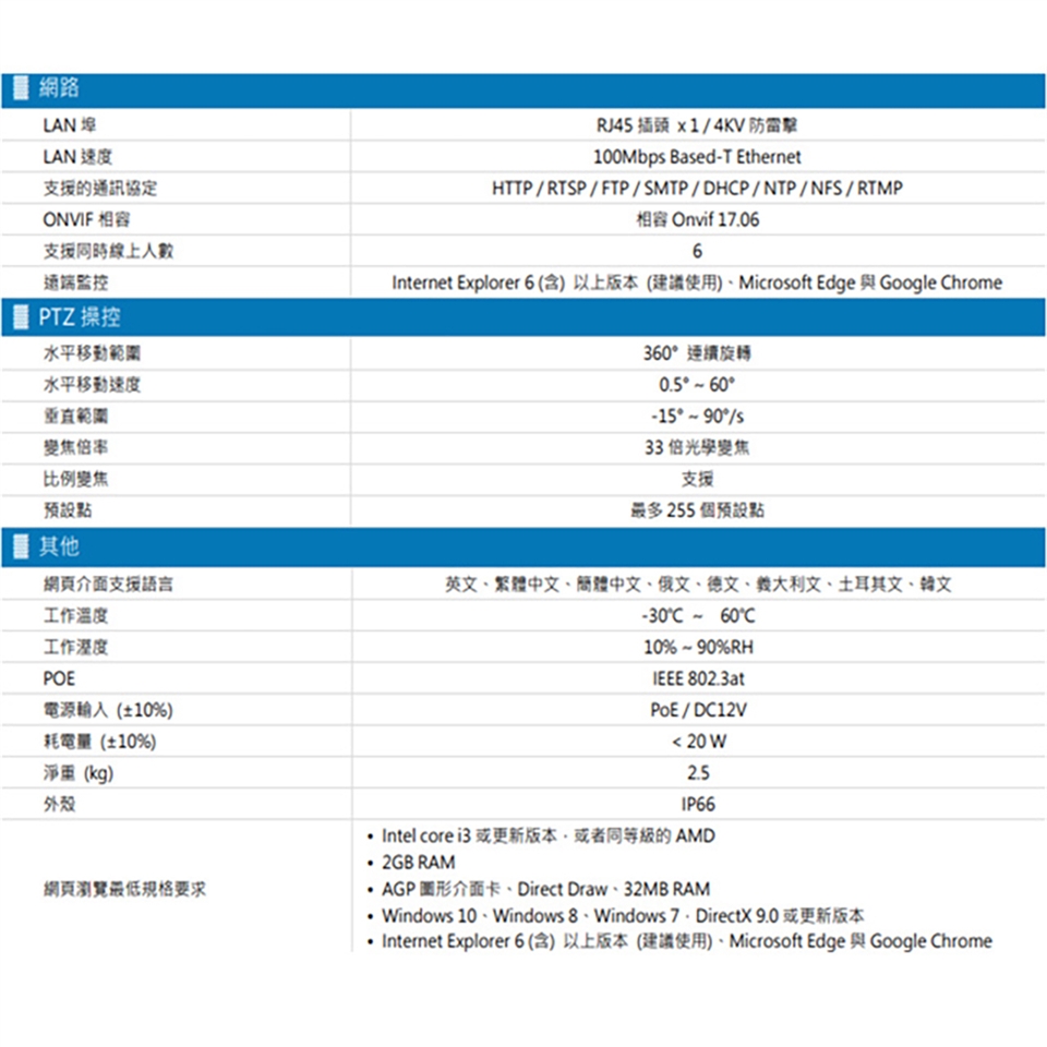 -搭配 33 倍光學變焦鏡頭 f4.5 ~ 148.5mm,適合各式監控環境使用