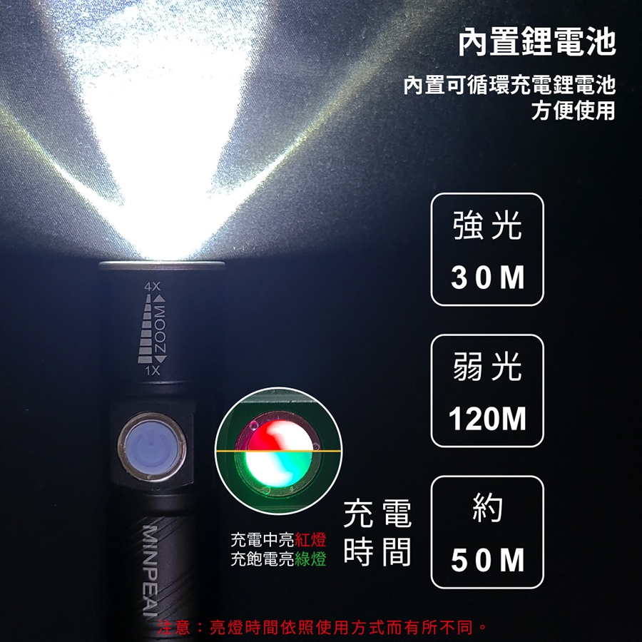 - 強光下使用約30分後會逐漸變暗,弱光約可使用120分。