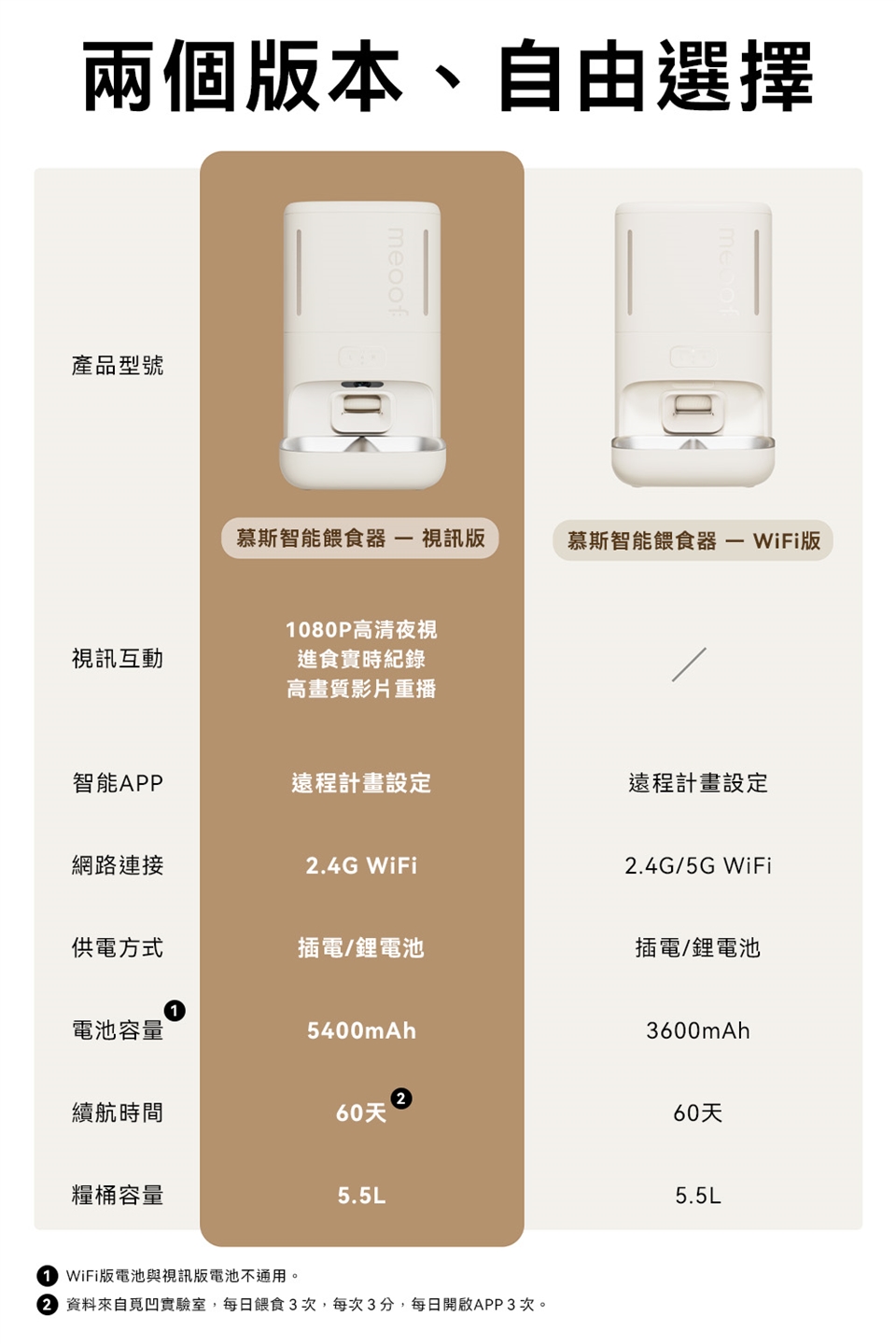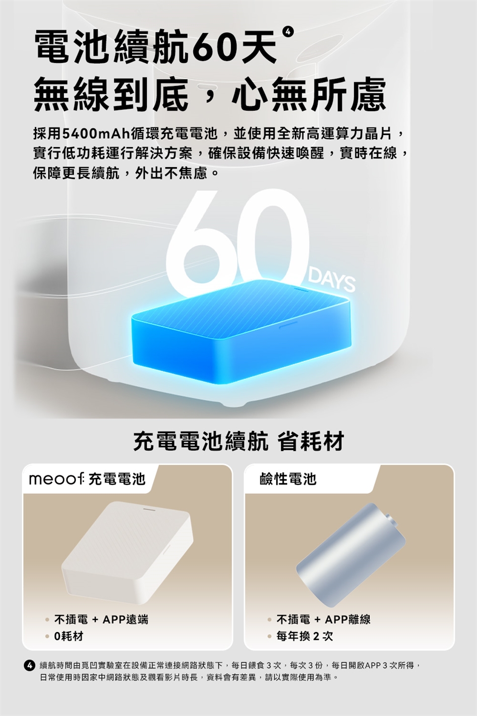 1.餵食器無線(電池)狀態下為緊急供電使用,此模式下連線功能只會記錄當下2分鐘內的進食紀錄,日常使用須以有線模式進行。