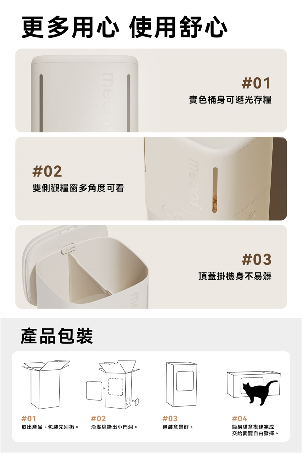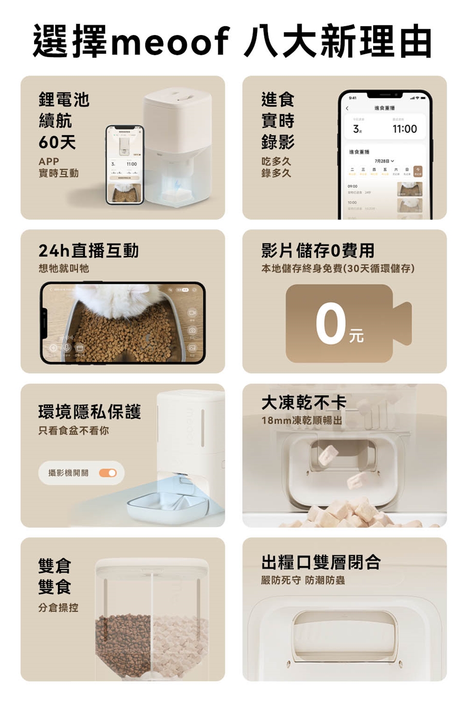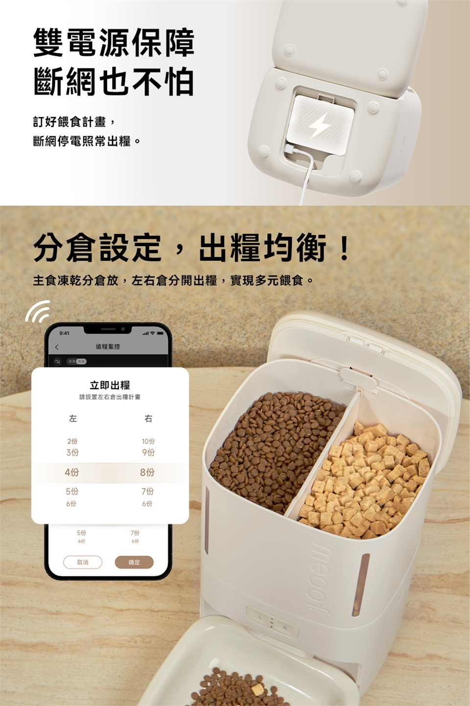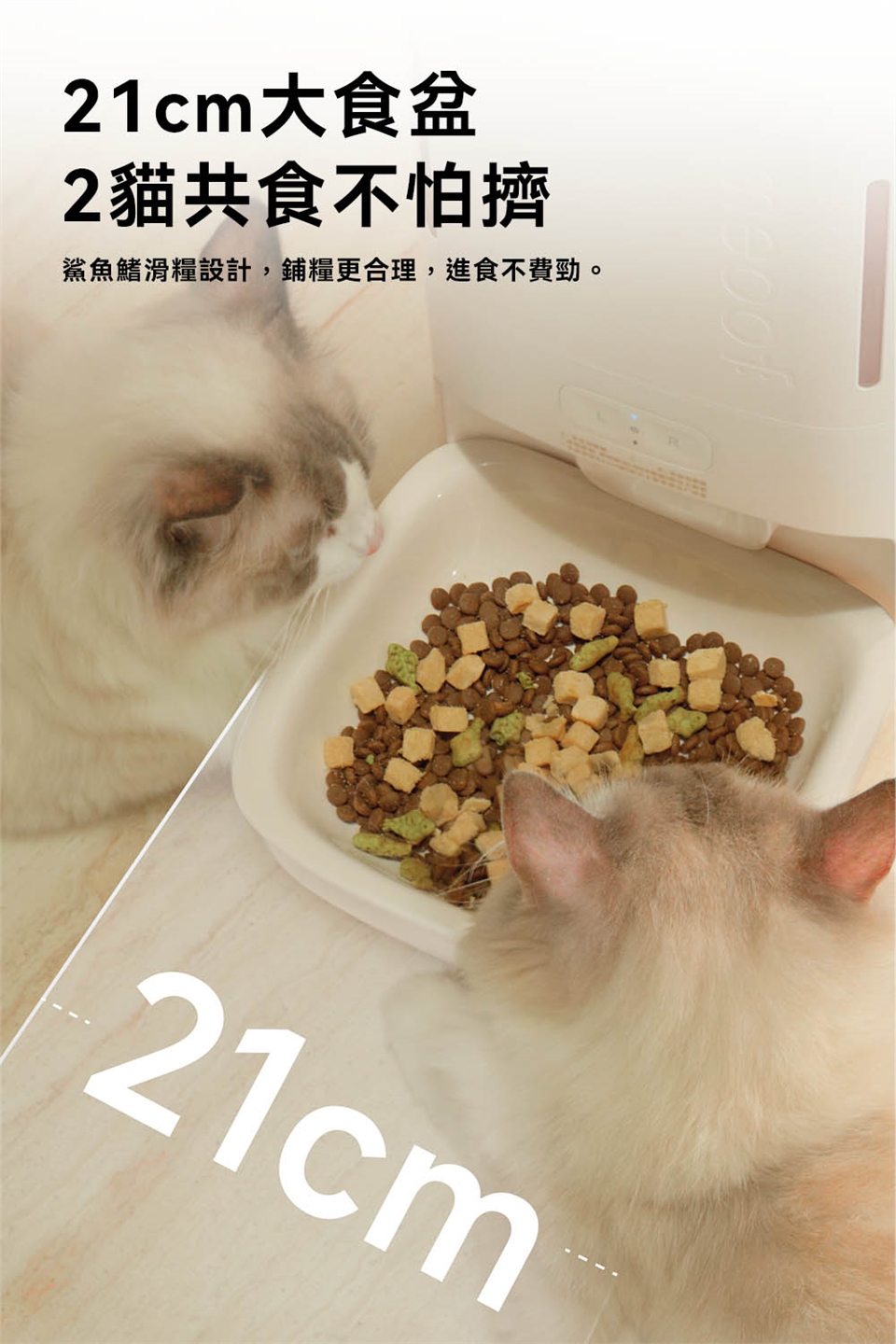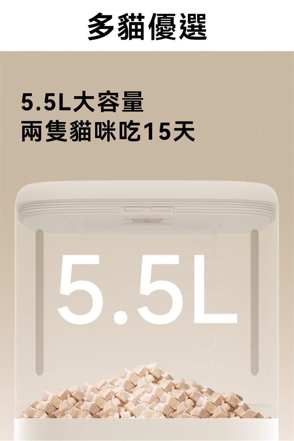 2.飼料桶可分隔存放乾飼料與凍乾,凍乾尺寸以1.8公分內為主。