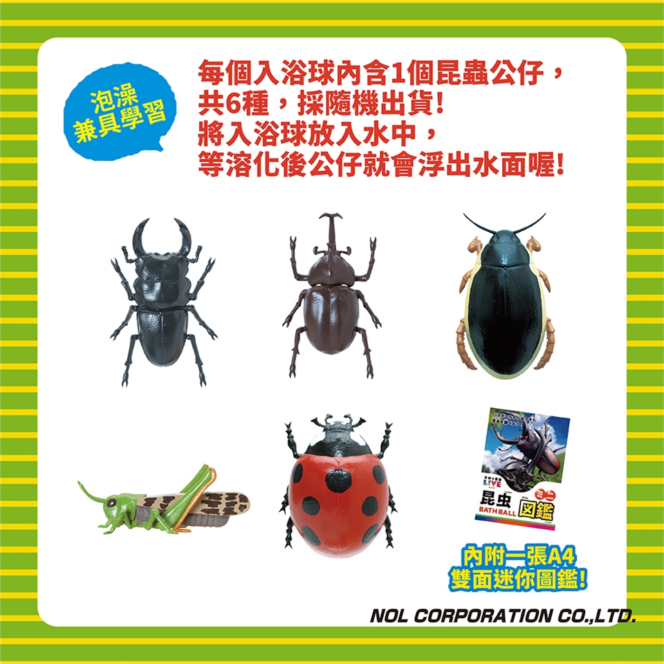 泡澡兼具學習喔!! 內附1個學研圖鑑-昆蟲小公仔,共6種,採隨機出貨!