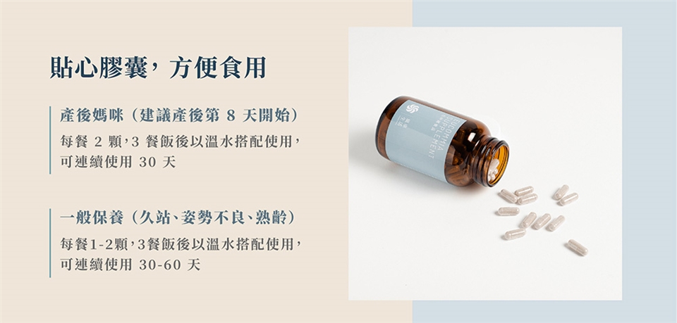 每餐1-2顆,3餐飯後以溫水搭配使用,可連續使用30-60天