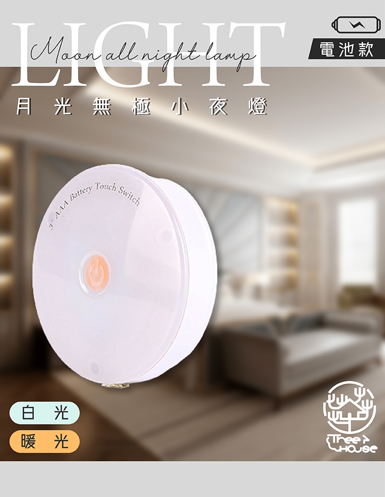 商品詳細介紹 【小樹屋】電池式圓形無級調光觸控LED小夜燈(1入)觸控設計,無級調光;無段調亮有黃光及白光兩種色光可供選擇,溫暖明亮皆備!快速方便,背膠貼紙磁鐵設計,可拆可攜帶輕便小體積,攜帶方便迷你型設計使用地點多元化不設限,不管是走廊、臥室或陽台皆能勝任! 體驗說明 不可體驗 使用方法說明 無 注意事項 無
