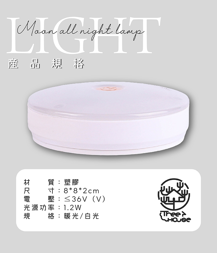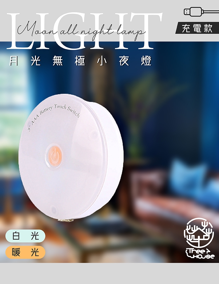 商品詳細介紹 小樹屋-充電式圓形無級調光觸控LED小夜燈(1入)觸控設計,無級調光;無段調亮有黃光及白光兩種色光可供選擇,溫暖明亮皆備!充電設計快速方便,背膠貼紙磁鐵設計,可拆可攜帶輕便小體積,攜帶方便迷你型設計使用地點多元化不設限,不管是走廊、臥室或陽台皆能勝任! 體驗說明 不可體驗 使用方法說明 無 注意事項 無