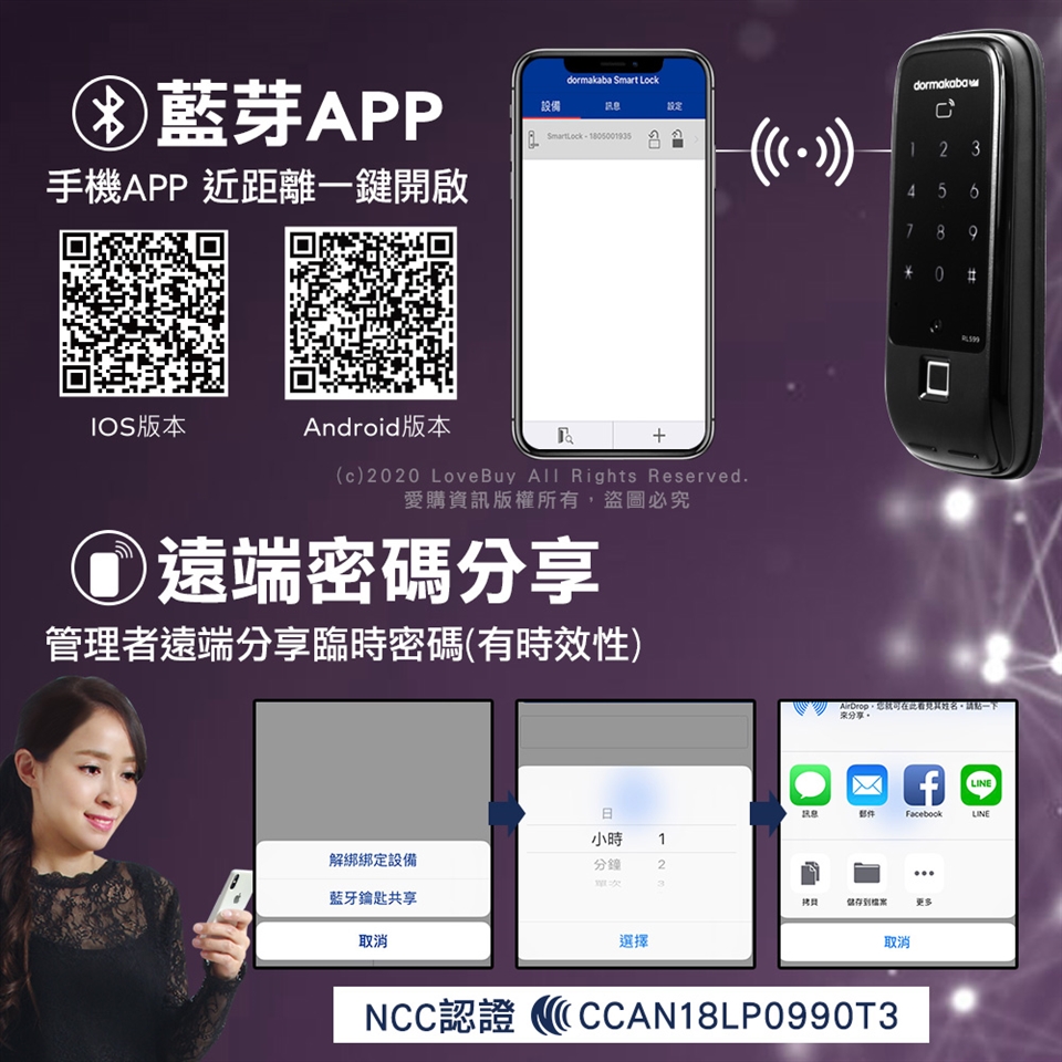 ◆近距離使用手機APP解鎖。