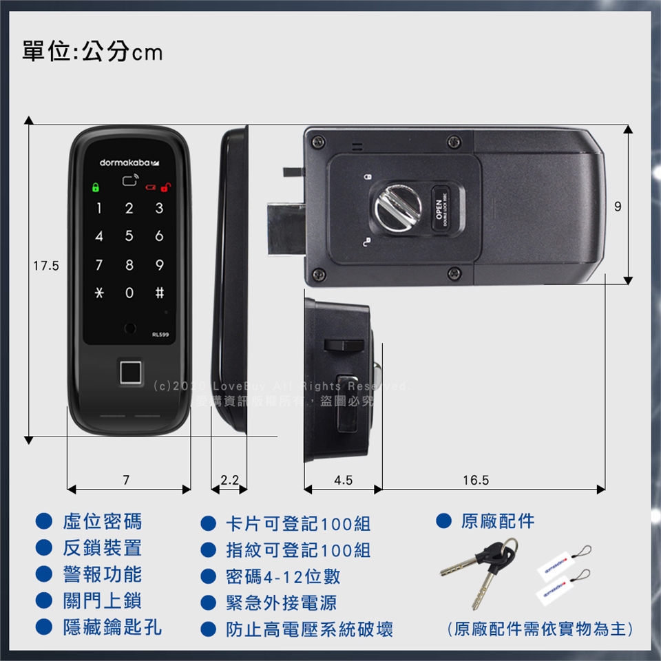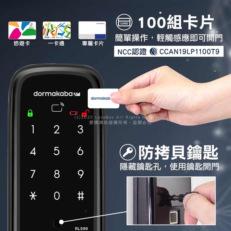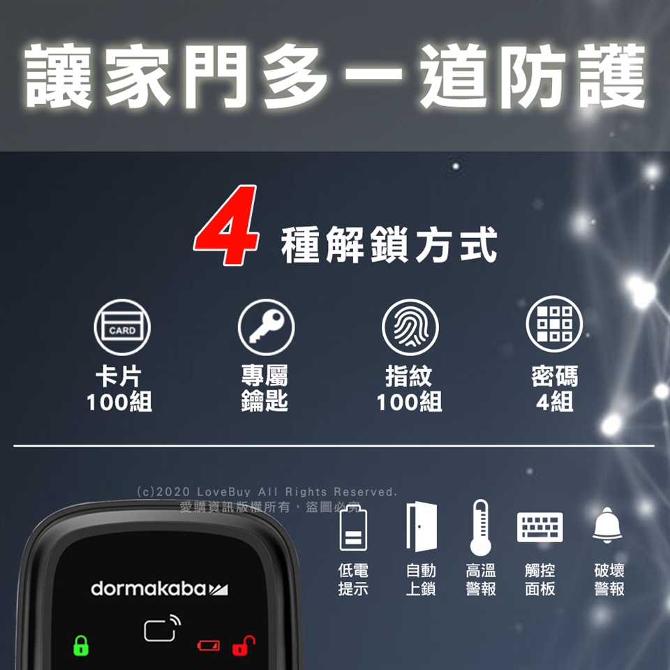 ◆指紋、密碼、鑰匙、卡片,四種開啟方式。
