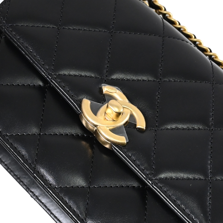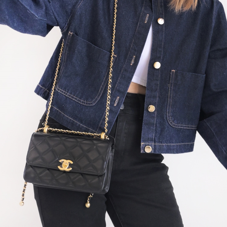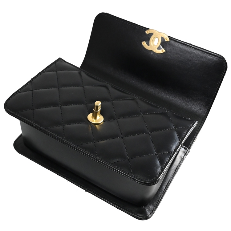 CHANEL 官網熱賣新版調節鍊包,19CM尺寸,雙C LOGO飾搭配菱格紋小牛皮材質,轉釦翻蓋開口/內有1貼袋供收納,可放中夾、I13 PRO MAX及同尺寸手機、鑰匙等隨身小物,專櫃新款調節扣設計,背帶可任意調節手提或斜背或肩背變化,高貴大方,展現出女性魅力,延續貴族品味的氣息。