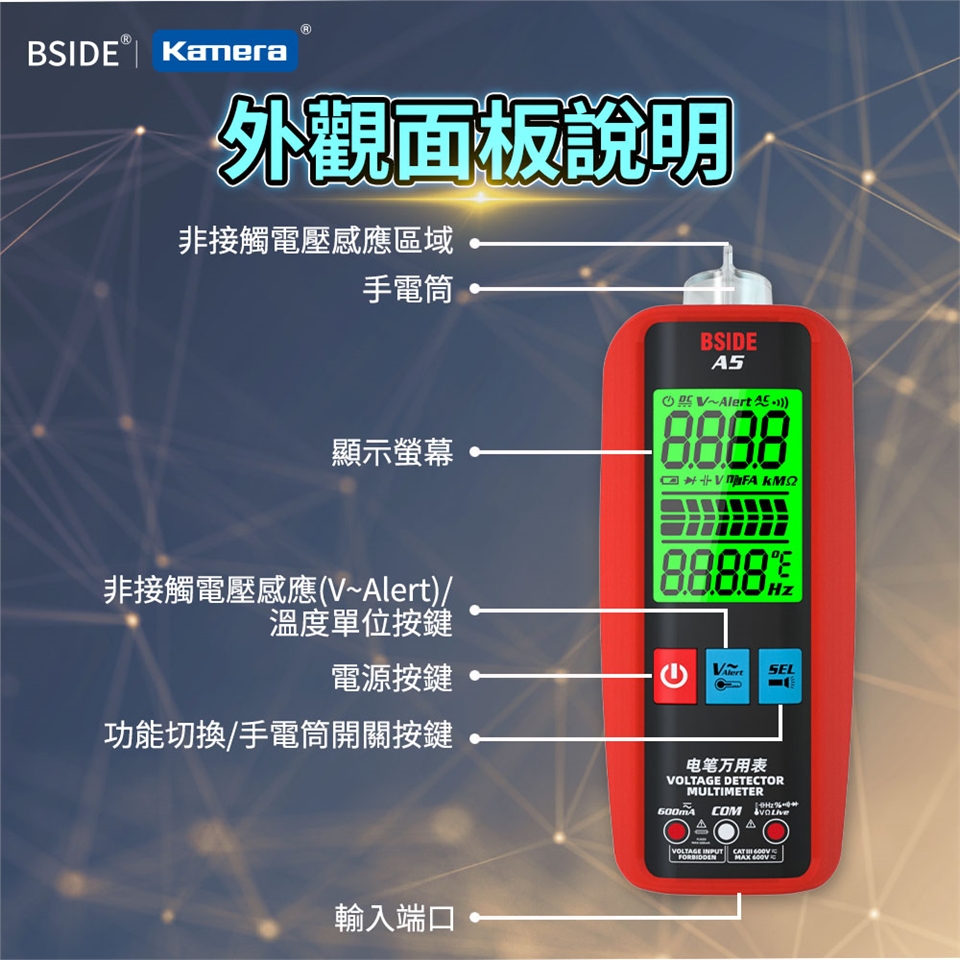 - 全功能多測量模式:支援電壓、電流、電阻、頻率等多種測量模式,讓您能夠應對各種測試需求。無論是在實驗室、車間還是家庭,都能輕鬆完成測試任務。