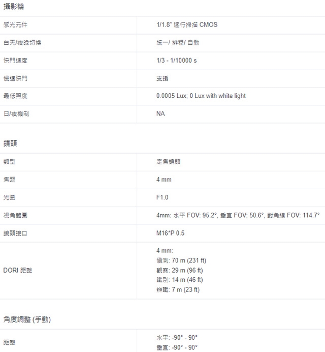 -超低光源彩色夜視: 無須補光,也能在超低光源環境中捕捉 24 小時 4MP 高品質和全彩影像