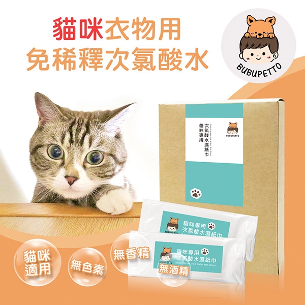 BUBUPETTO-貓咪 衣物清潔用次氯酸水濕紙巾-商品介紹