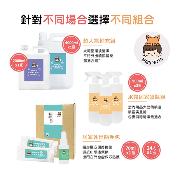 BUBUPETTO-貓咪衣物清潔用次氯酸水濕紙巾-多種組合