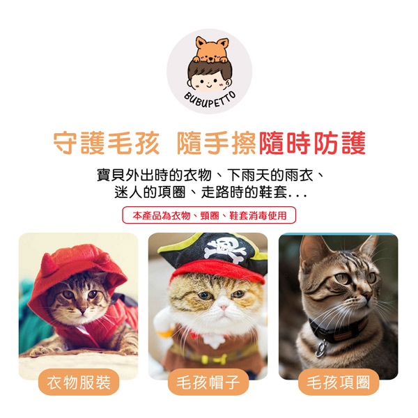 品名:BUBUPETTO-貓咪衣物清潔用次氯酸水濕紙巾