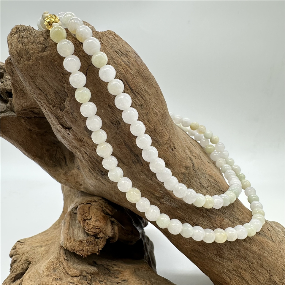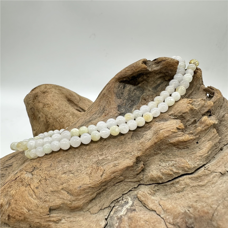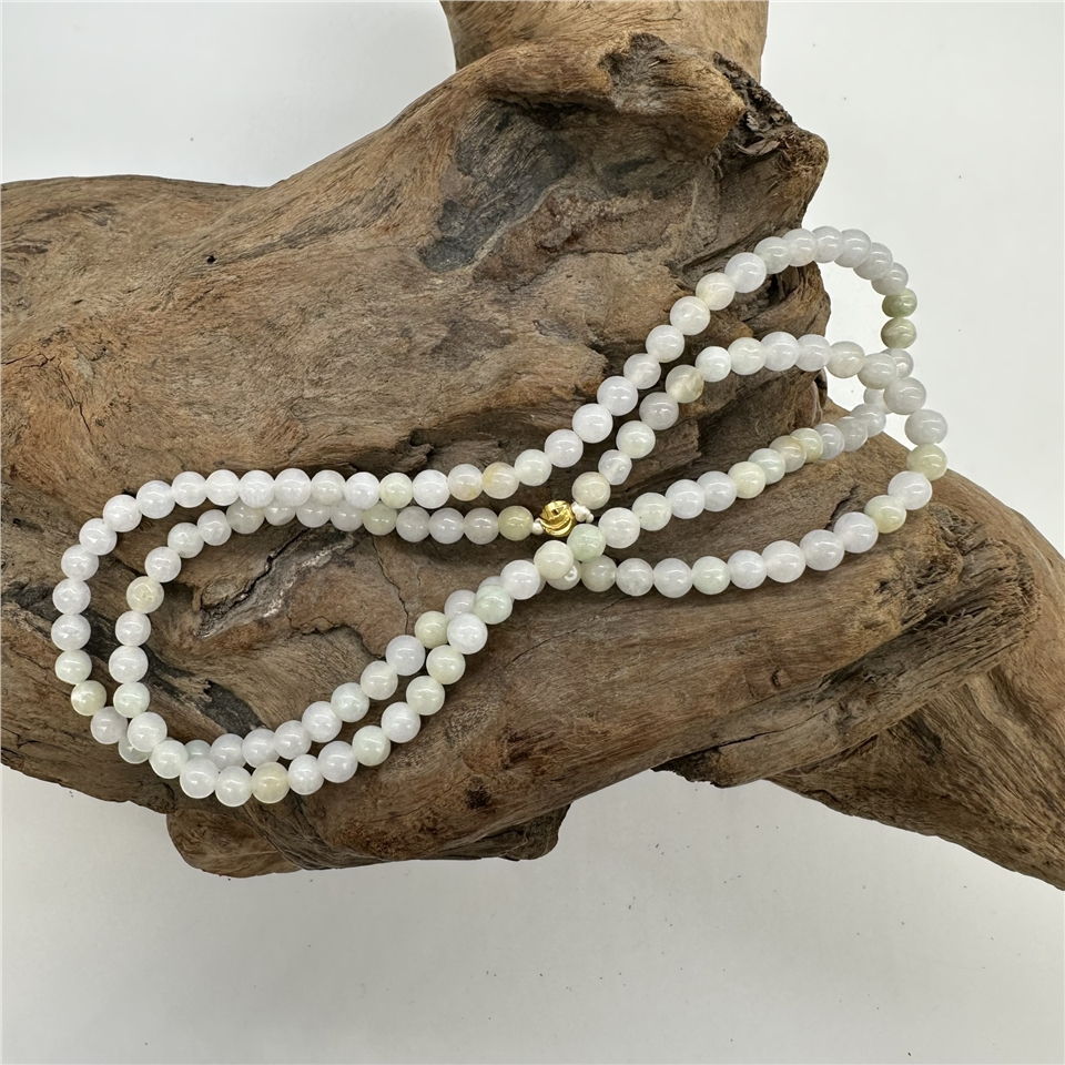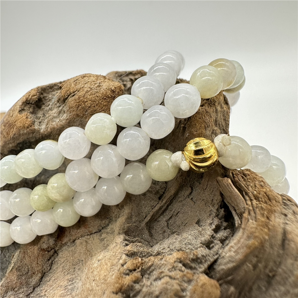 【肌容雪】緬甸天然A貨翡冰三彩翡翠園珠手串 編號746