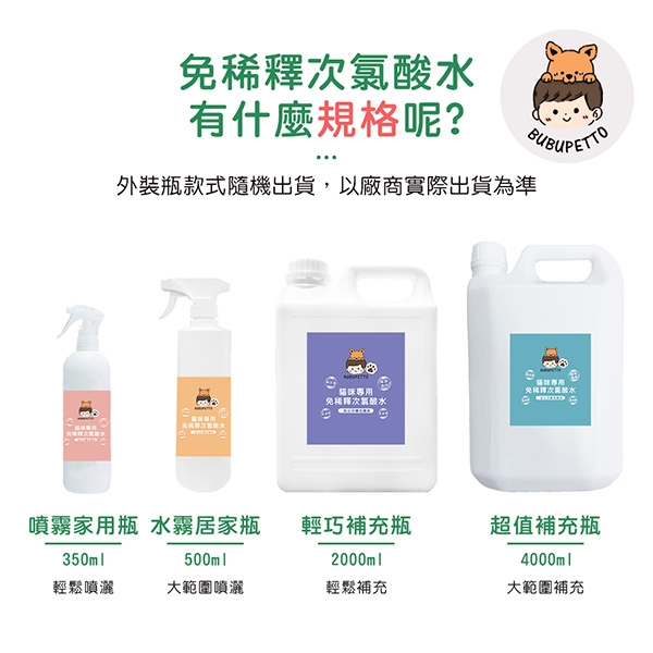 BUBUPETTO-貓咪餐碗清潔用免稀釋次氯酸水500ml-規格說明: