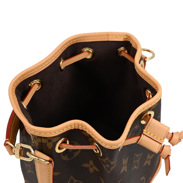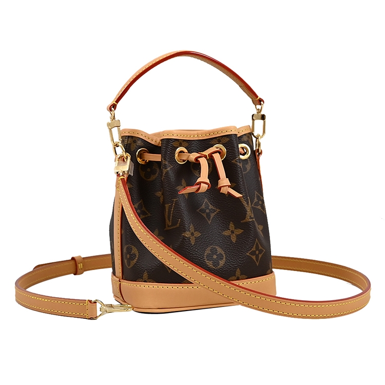 LV Nano Noé以迷你版本演繹1932年設計的經典Noé包款。小巧的Nano Noé採用綴有天然牛皮飾邊的Monogram帆布製作,結合傳統風格及富現代感的實用元素。設計配有可拆式手柄和可拆式及可調節長度肩帶,可作多種方式攜帶。袋款容量充足,可存放必需品,包括鑰匙、名片夾及智能手機。