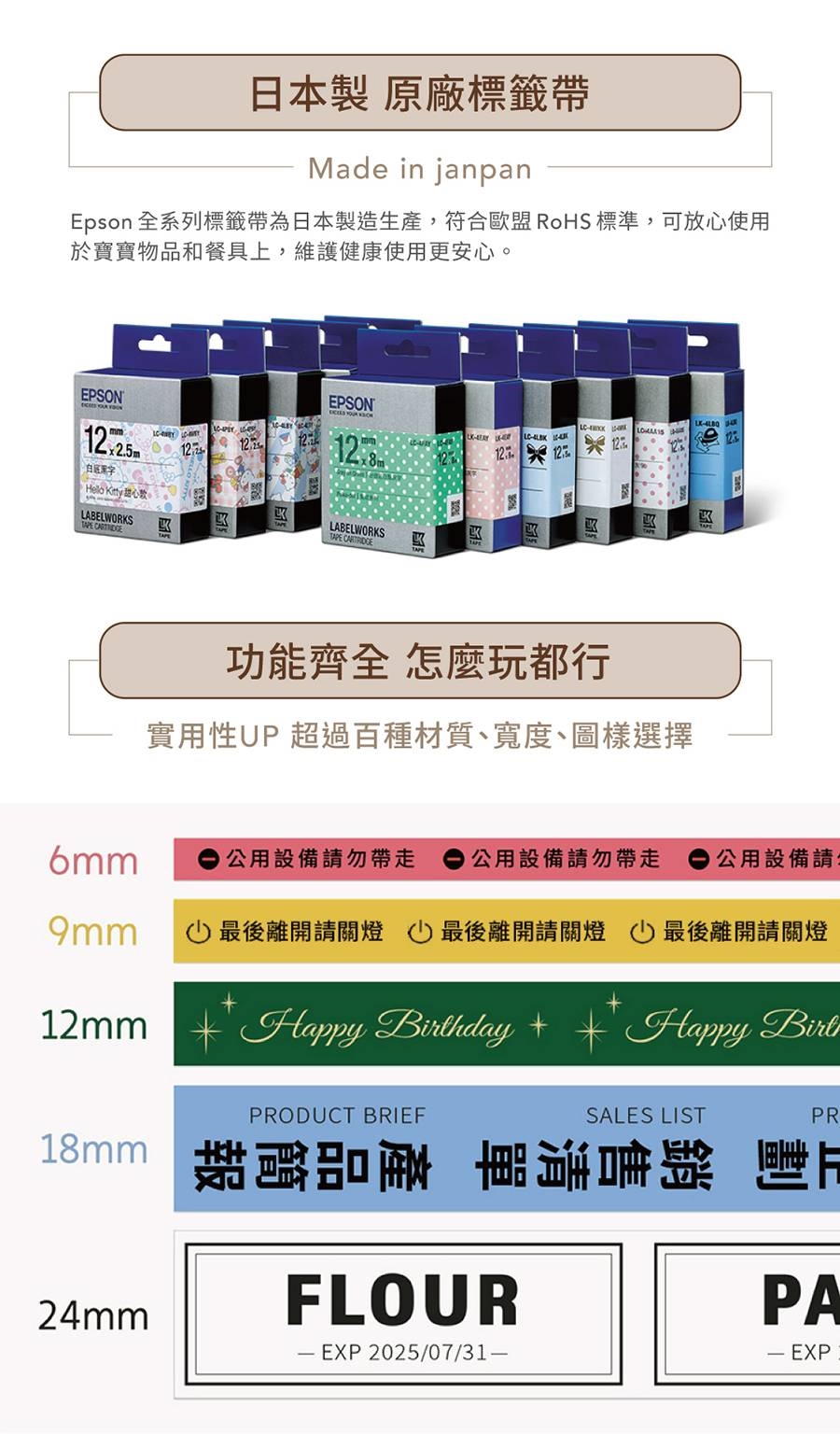 ★綠色環保:Epson全系列標籤帶通過國際權威機構RoHS官方認證,不含化學藥劑和對人體有害的物質,可放心使用於寶寶物品和餐具上