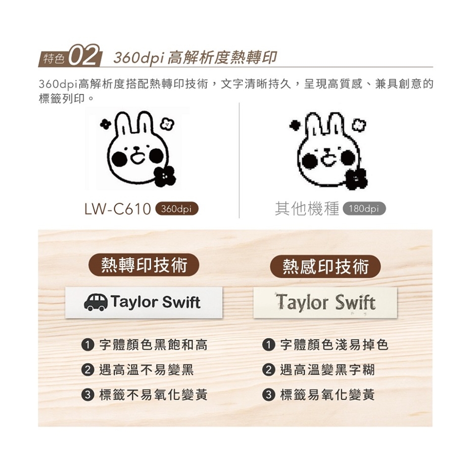 ★ 360dpi 高解析,12mm/s 高品質熱轉印,列印線條不失真