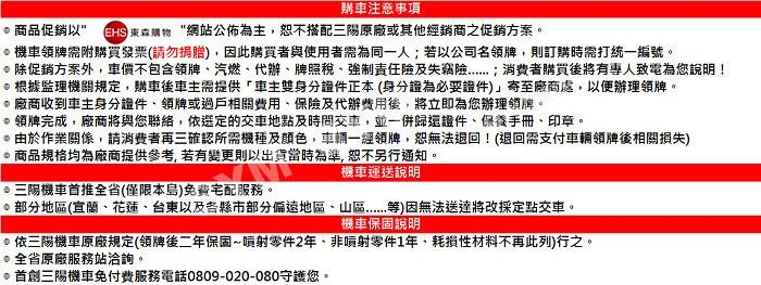 ◎ 保固兩年,保固內如有任何問題請撥打三陽客服 0809-020-080