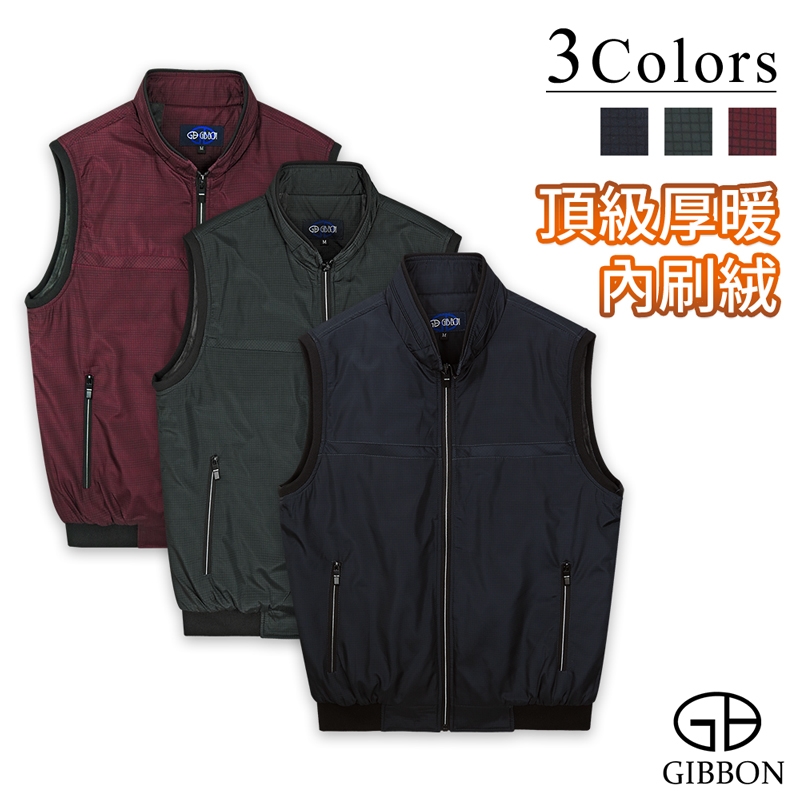 GIBBON 頂級厚暖內刷絨保暖鋪棉背心 經典格紋款 黑藍/灰綠/酒紅
