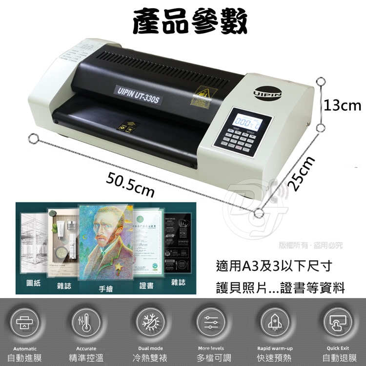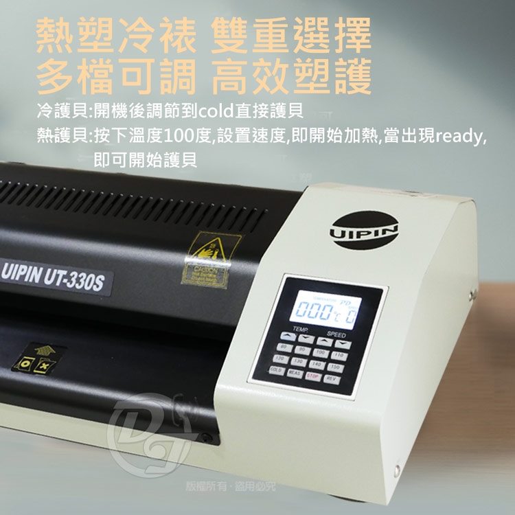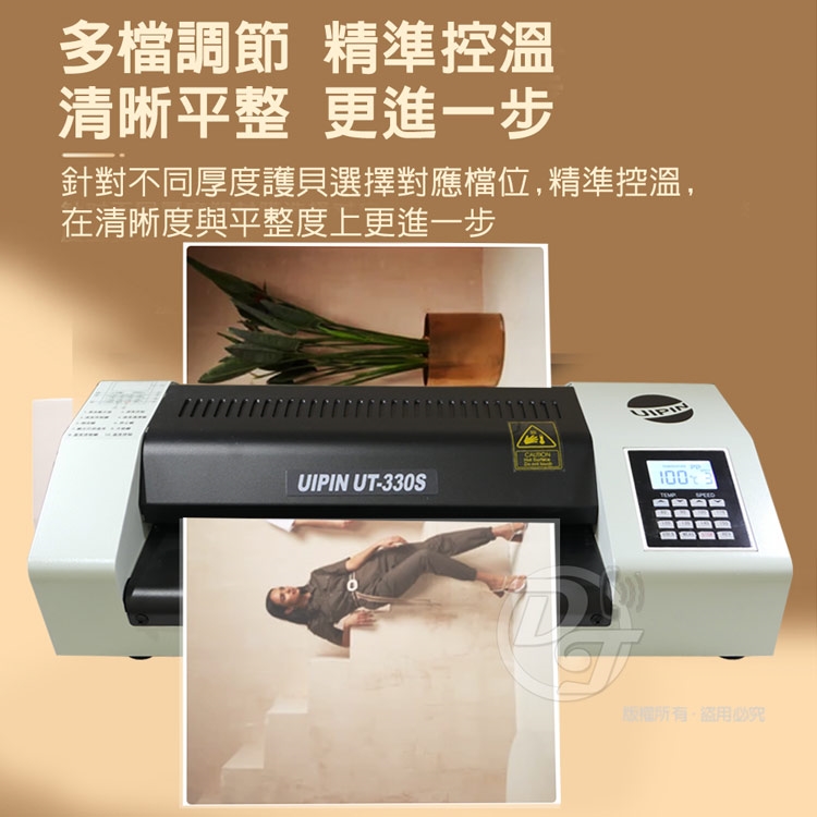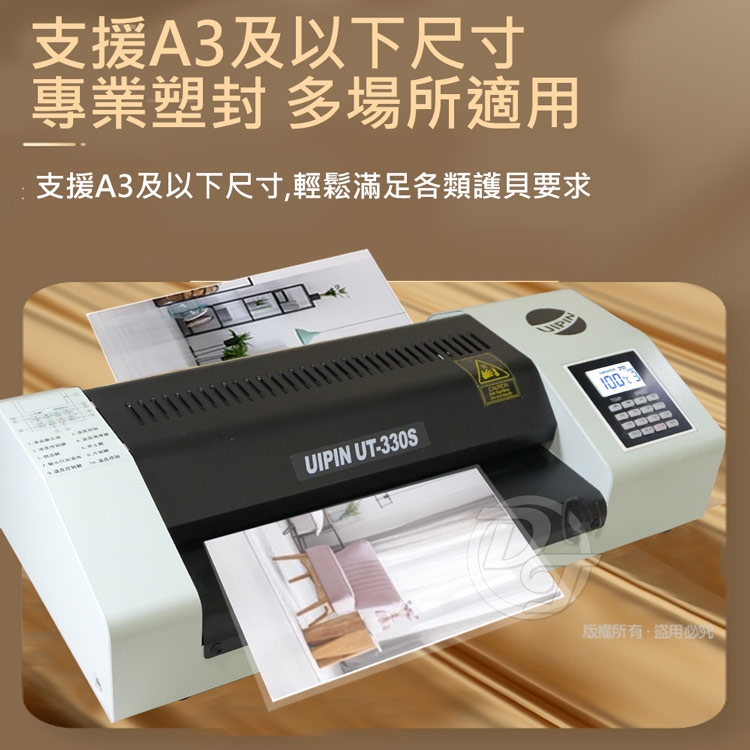 UIPIN 辦公室(4滾輪)A3溫度顯示護貝機 (內加熱型) UT330S