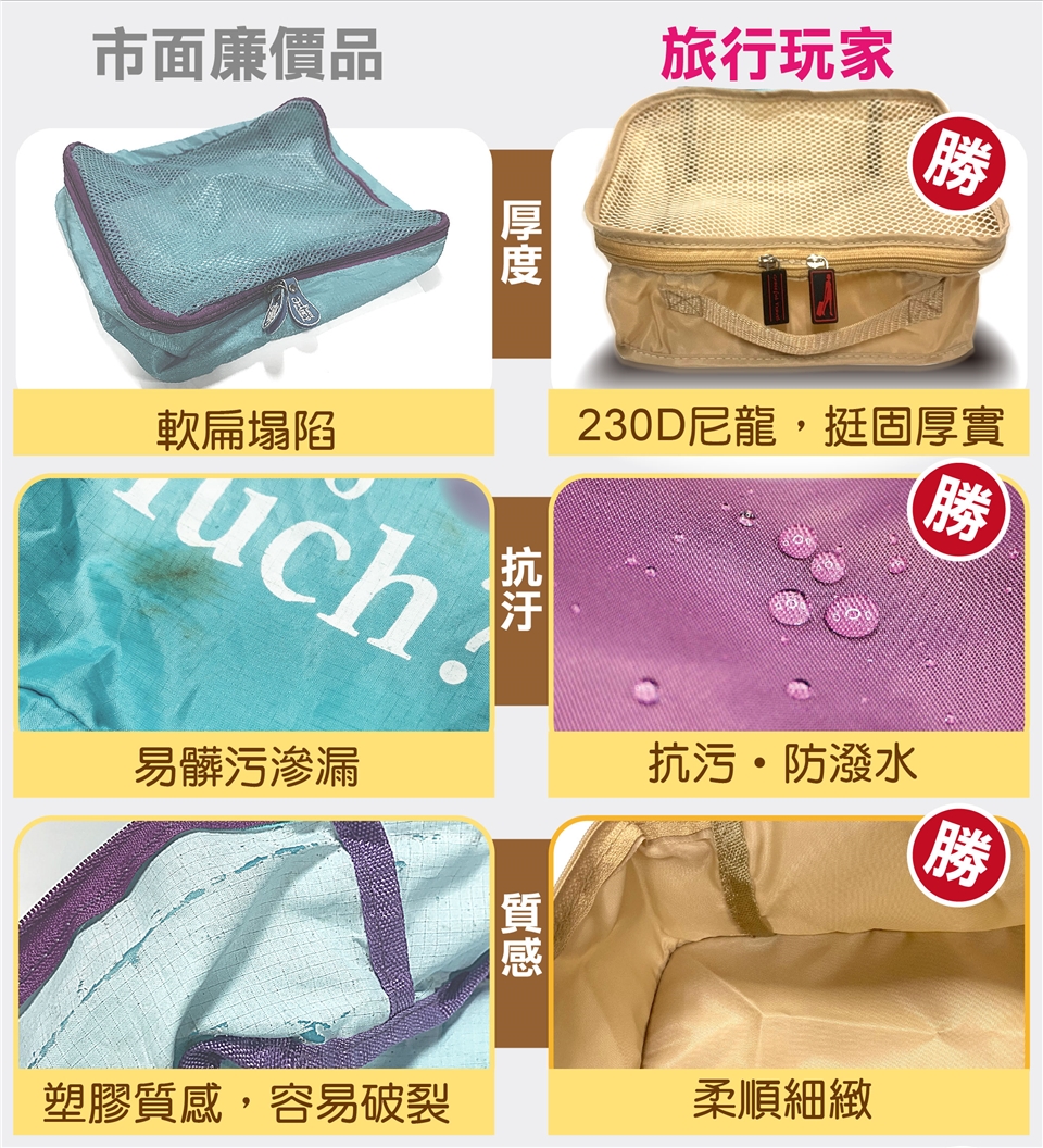 ▲230D尼龍抗汙防潑水材質,有別於一般PVC材質產