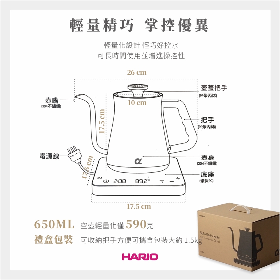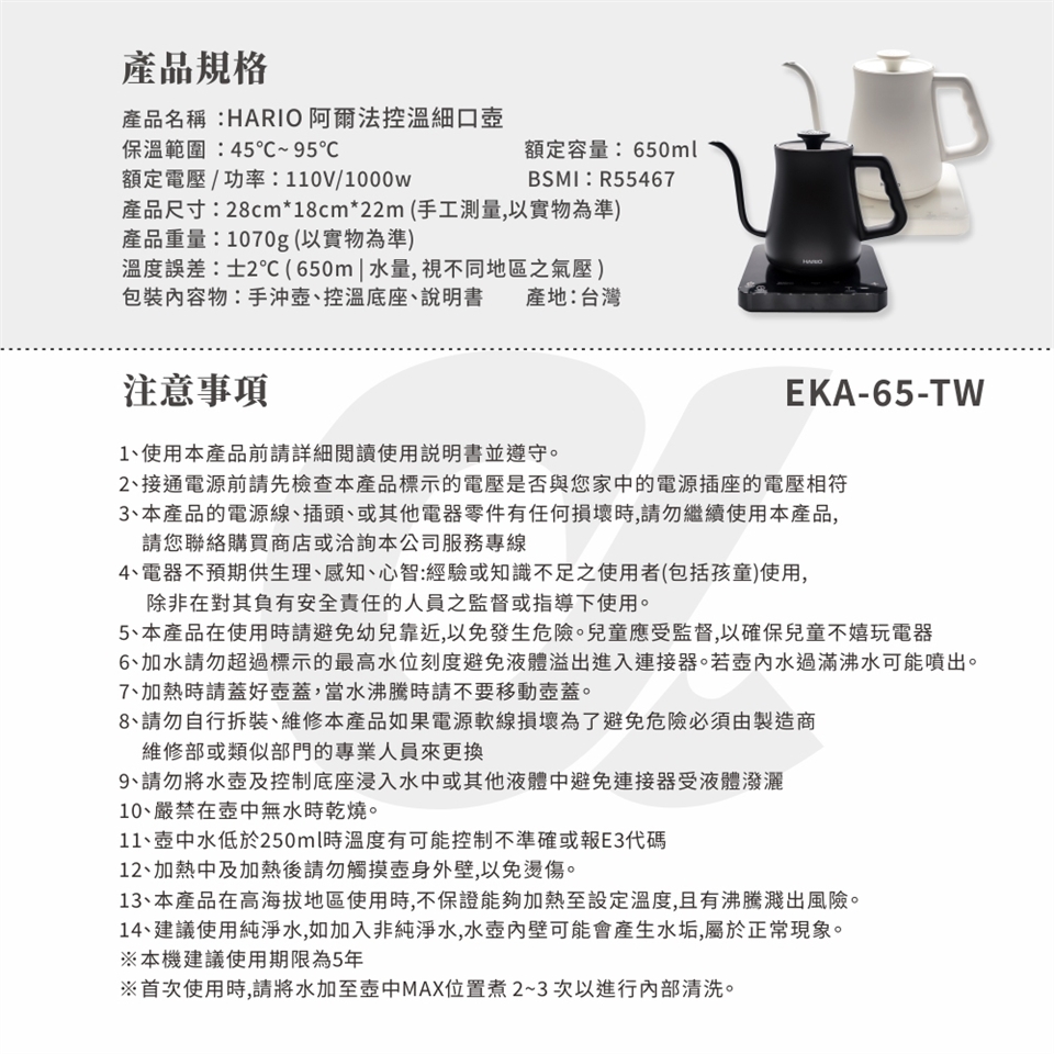 品名:【HARIO】α 阿爾法溫控細口壺 EKA-65-TW -650ml