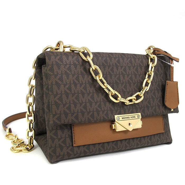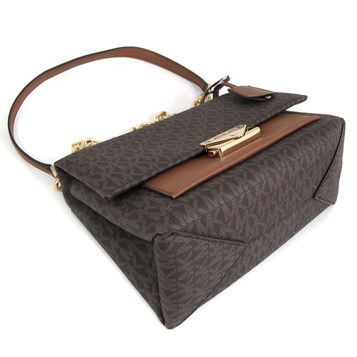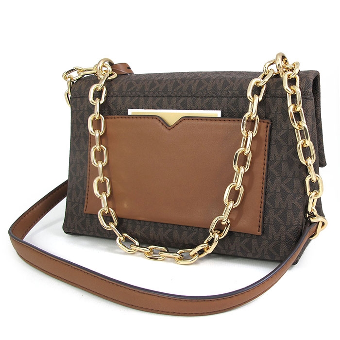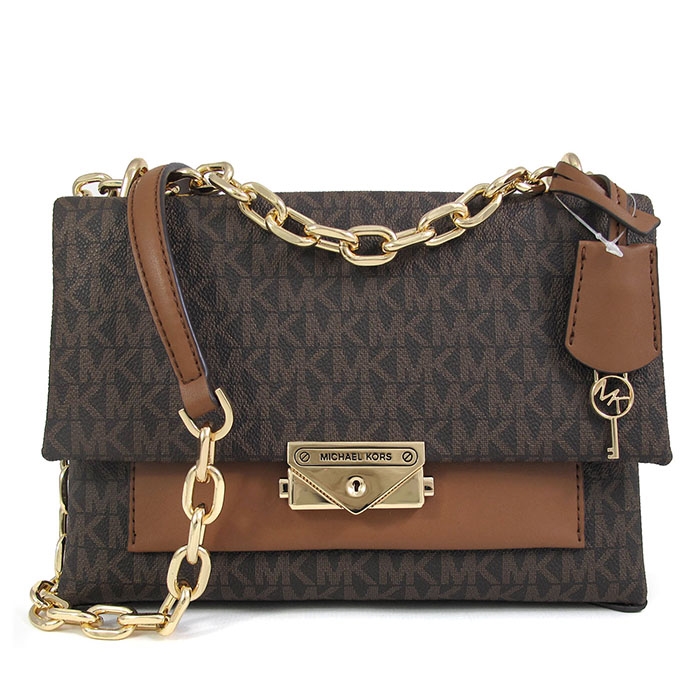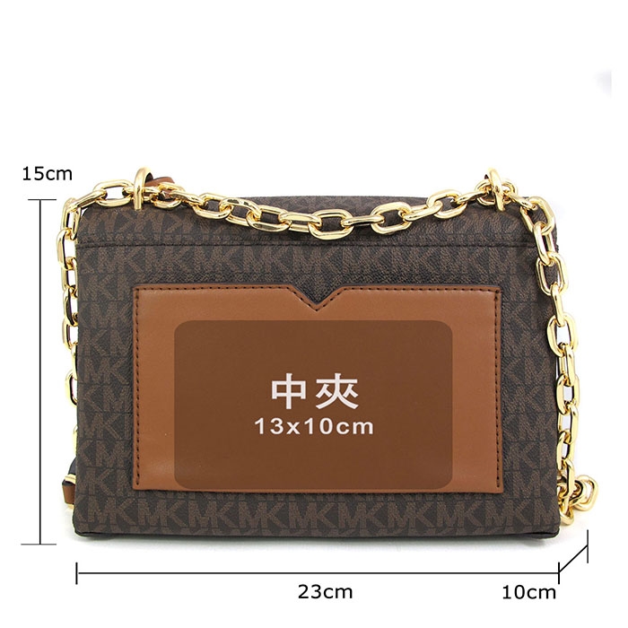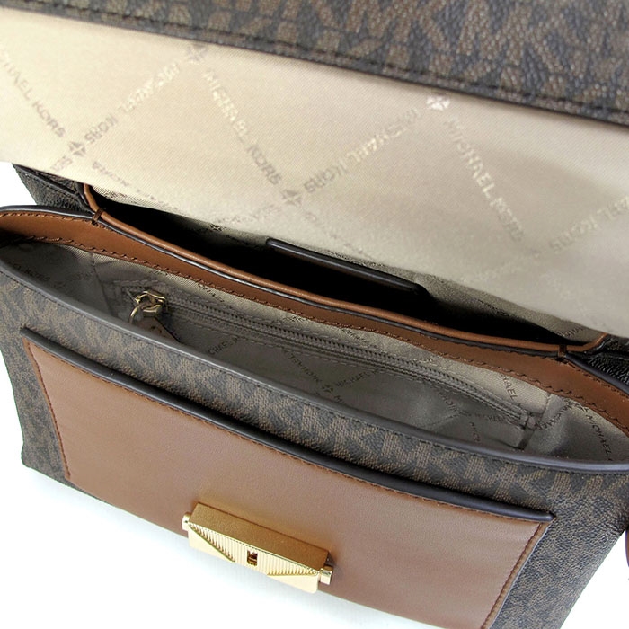MICHAEL KORS 滿版LOGO壓扣前口袋肩斜兩用包。包款以壓扣做為封口,內有一拉鍊袋,前背面各有一外袋。背帶可做肩斜兩用,絕對是您不可或缺的時尚精品!