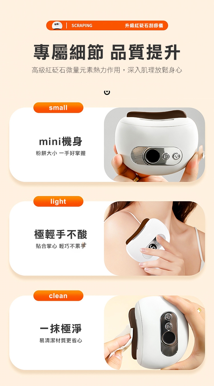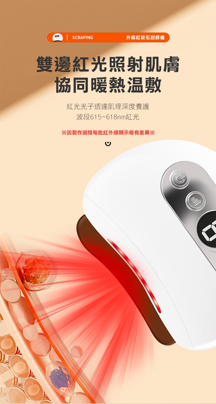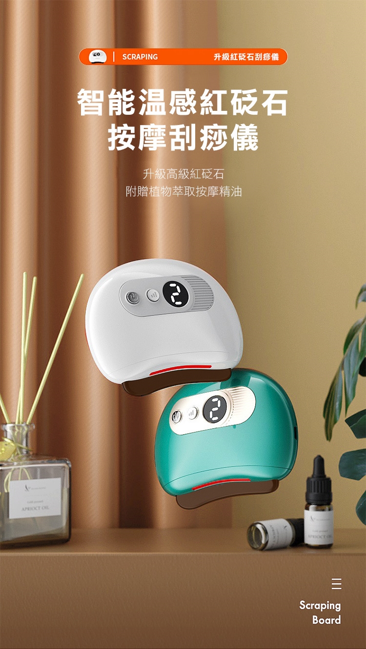 忙碌的一天感到身體諸多不適嗎? 您一定需要這款『智能溫感紅砭石按摩刮痧儀』,選用原生砭石紅光熱敷,深入肌理,按摩舒緩,養護身心,9檔位自由切換,滿足多種需求,趕走疲勞,附贈植萃精油,也可自行選擇搭配精油刮痧,舒緩緊繃肌肉。美容/刮痧/按摩…在家就能享受SPA級護理~