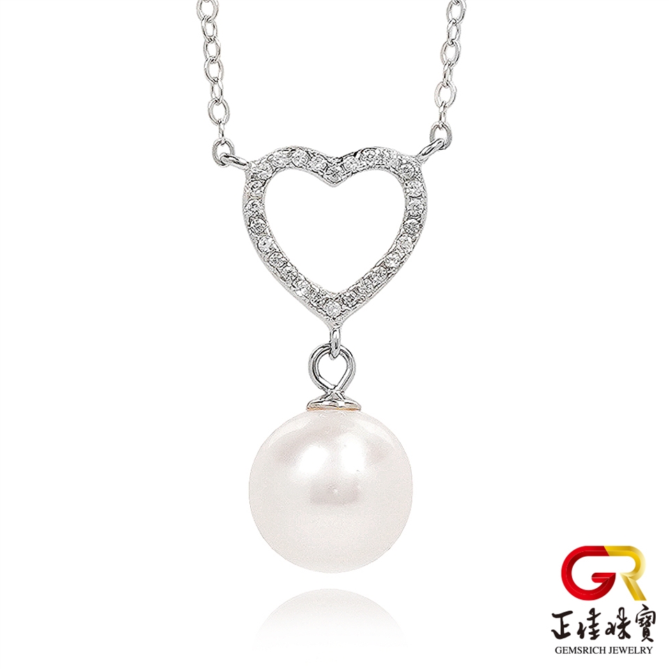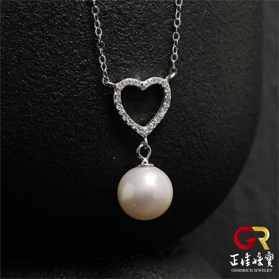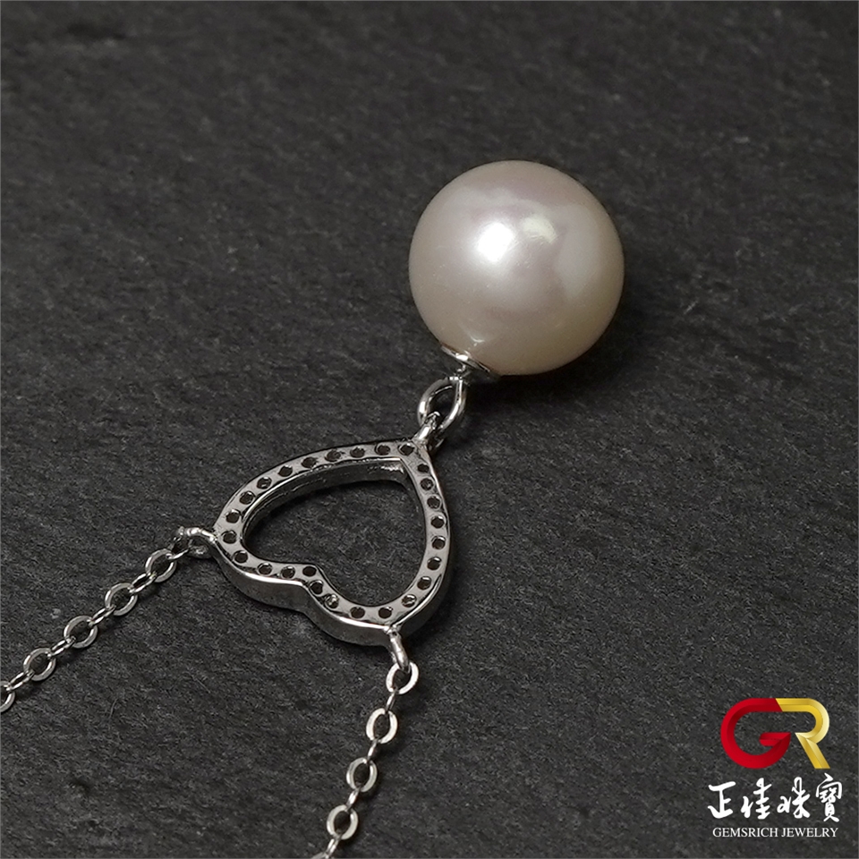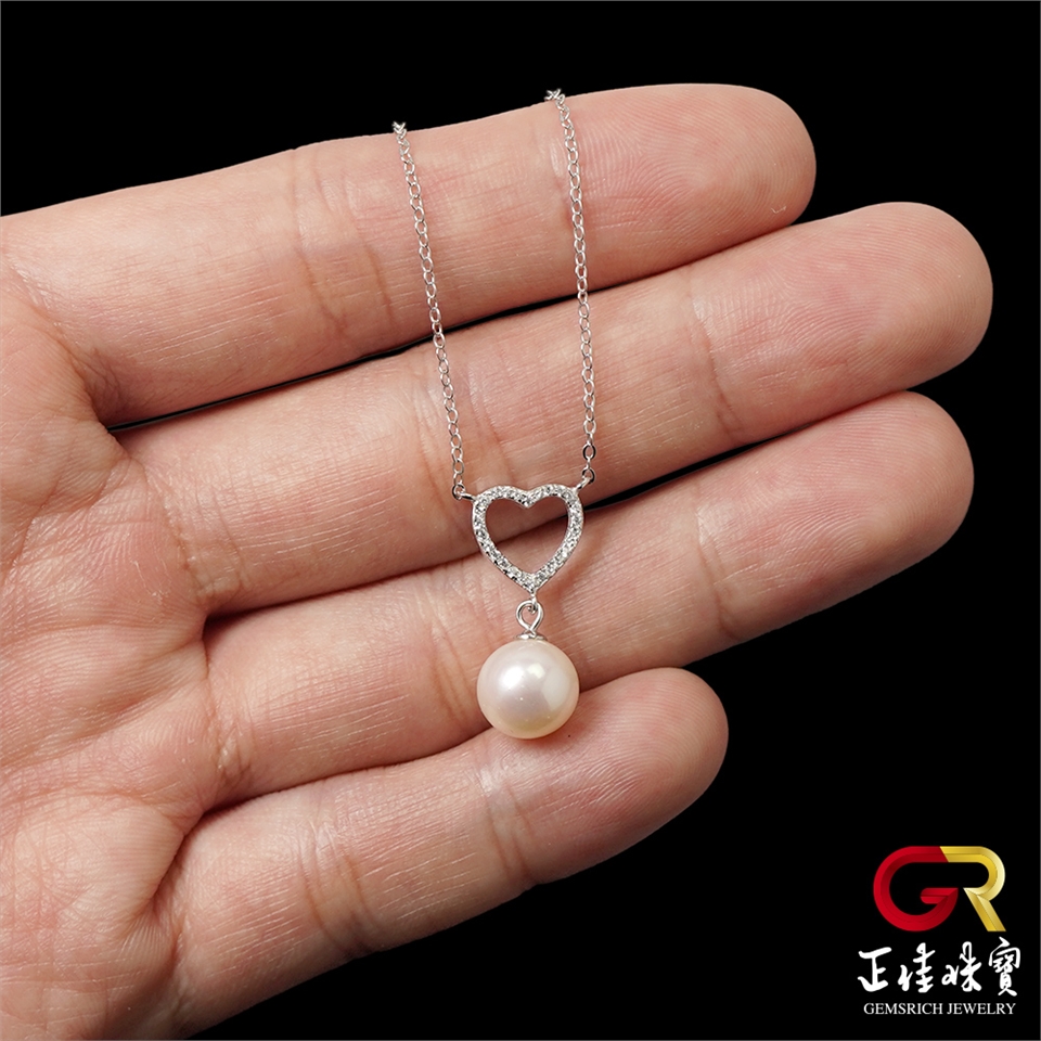 主角:淡水珍珠 9mm 心形設計款 天然珍珠吊墜|925銀方晶鋯石微鑲
