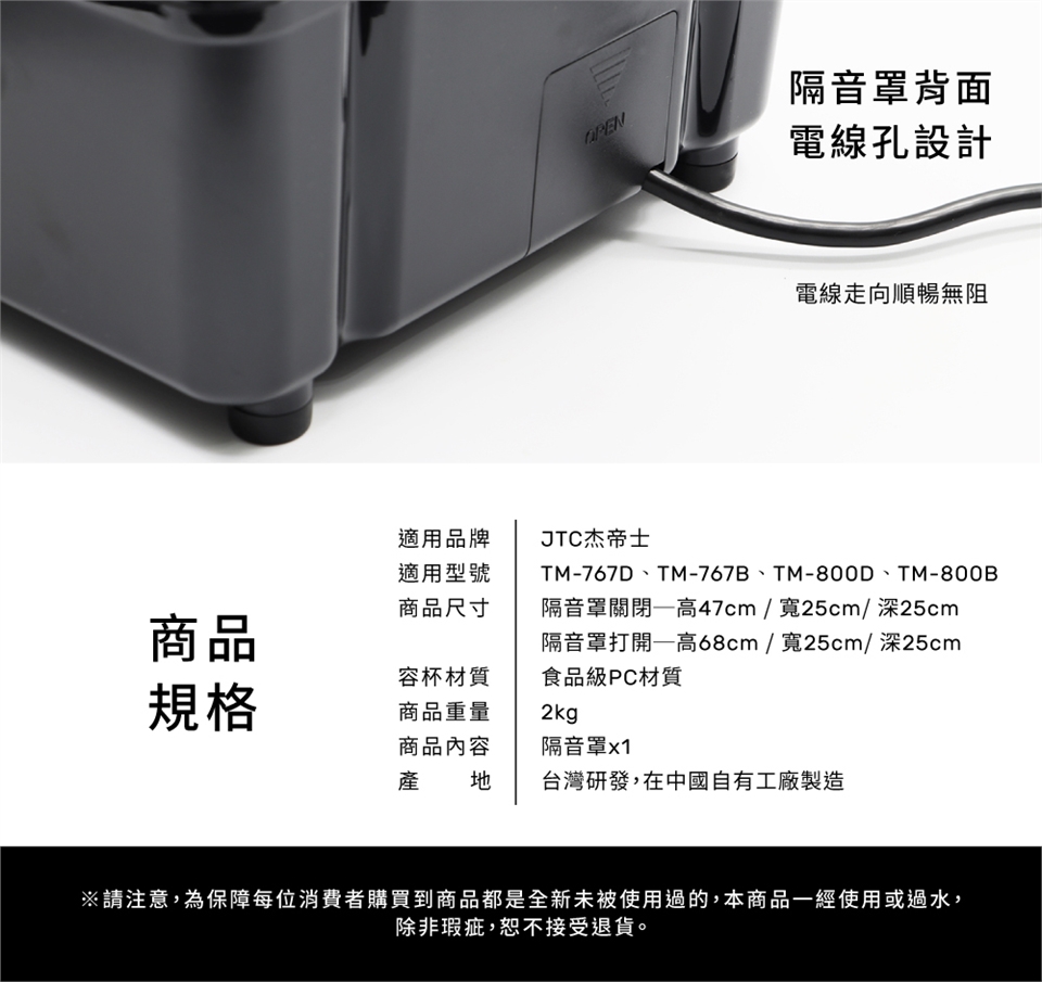 ●全包覆隔音罩,有感降噪,高硬度食品級PC材質,堅固耐用。