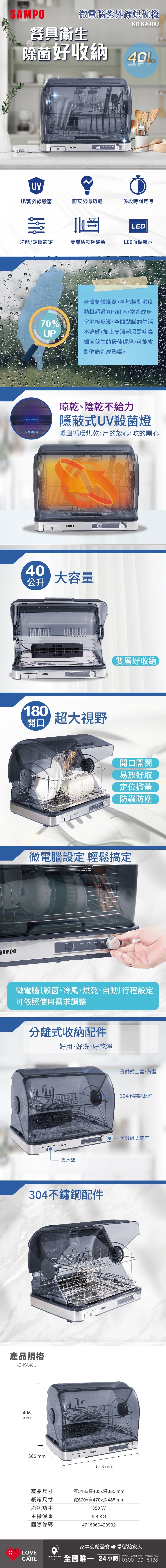SAMPO聲寶 40L微電腦紫外線烘碗機 KB-KA40U