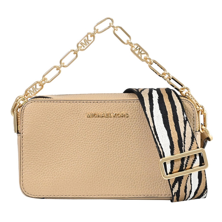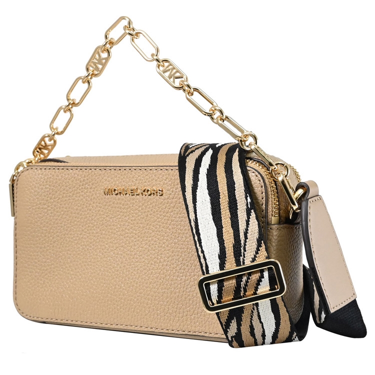 MICHAEL KORS 品牌(簡稱MK)成立於 1981 年是美國設計師同名的品牌;專櫃商品,專櫃款,MK是國際品牌中多夾層設計的品牌,此款為熱賣高人氣斜背方包,每季推新版新色,經典浮雕LOGO搭配質感荔枝皮革,雙層拉鍊開口/內有1內袋+3卡夾層,包身後1貼袋,內可放皮夾及6.1吋手機等隨身小物,鍊條為可拆式,若偏好斜背鍊包的你,不能錯過這款。