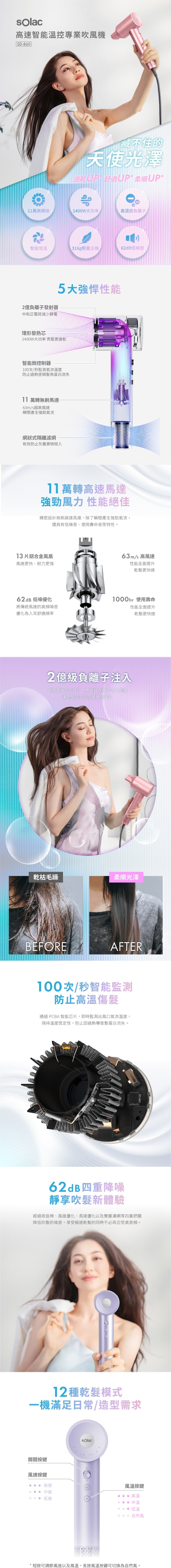 西班牙Solac 高速智能溫控專業吹風機 SD-860