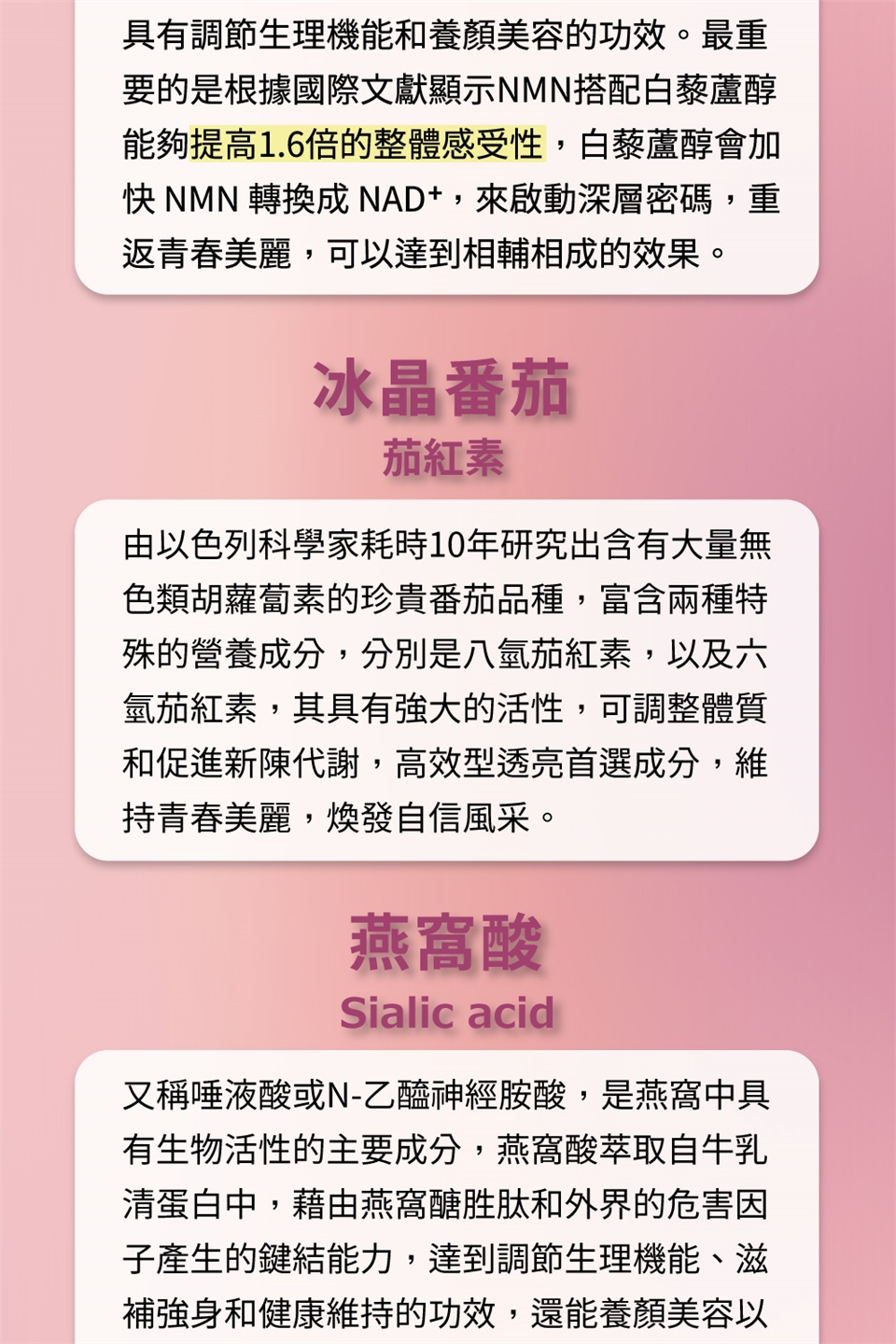 2.本產品含有牛奶及其製品(牛乳清蛋白萃取物(含燕窩酸))。