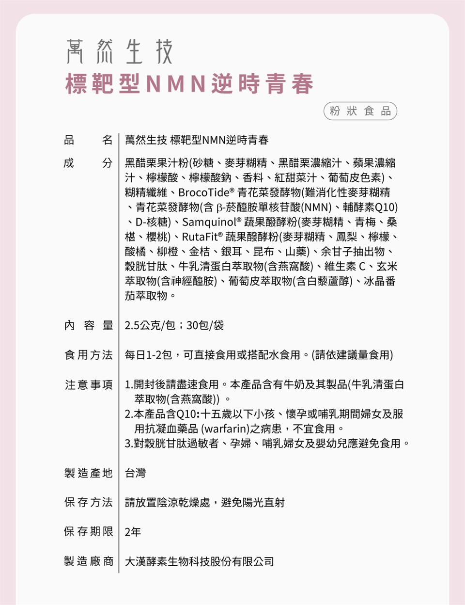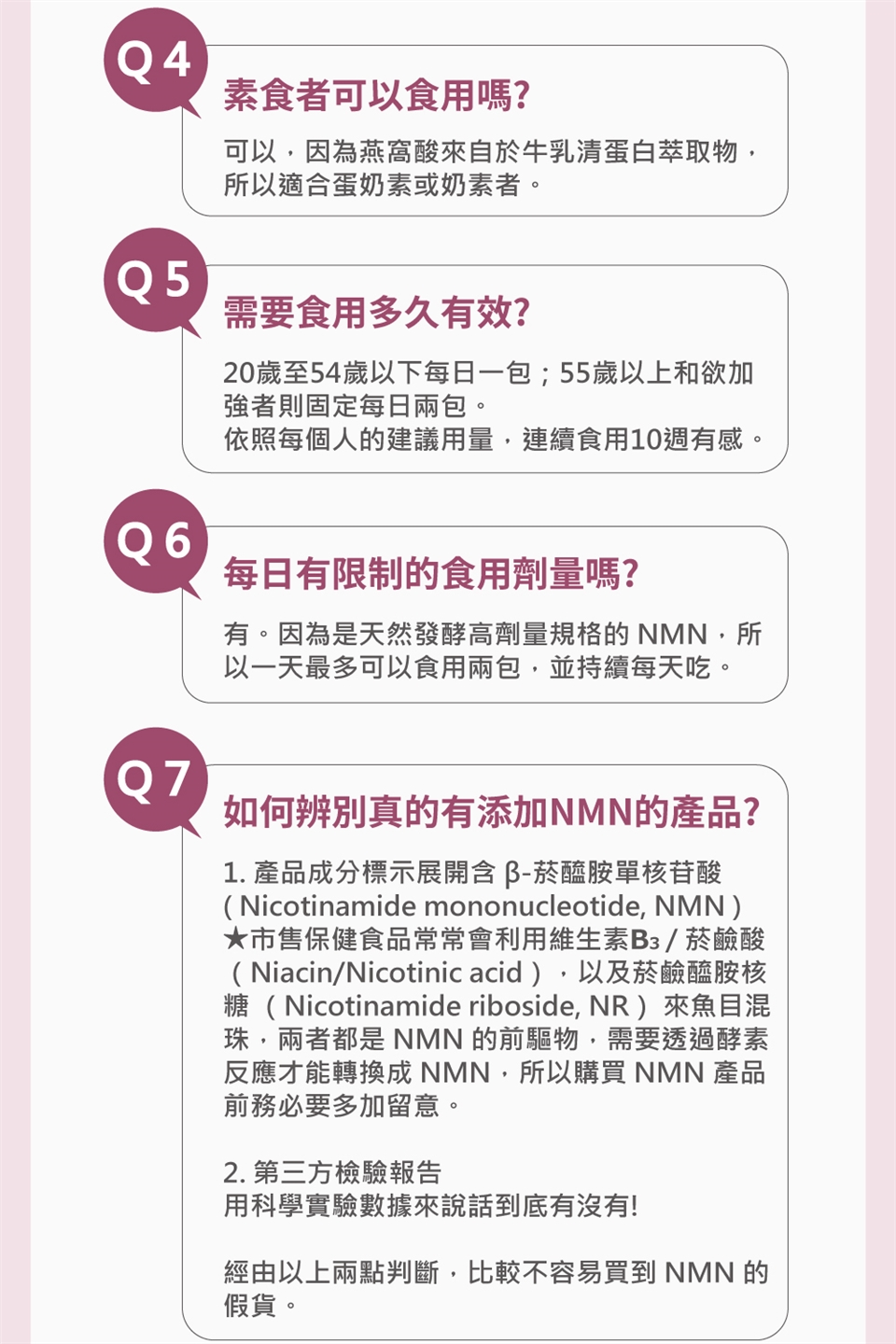 3.本產品含Q10 : 十五歲以下小孩、懷孕或哺乳期間婦女及服用抗凝血藥品 (warfarin)之病患,不宜食用。