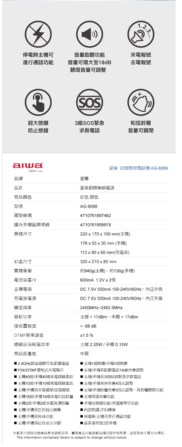 功能與規格時有變更,恕不另行通知