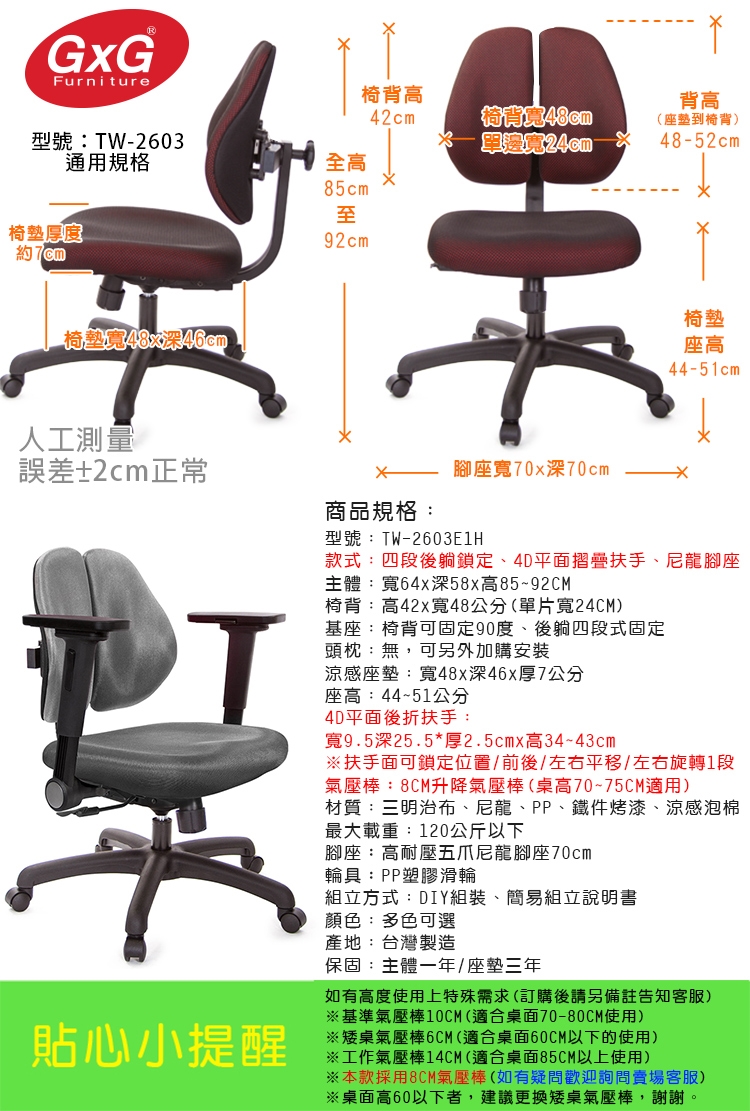 購買注意事項:本座椅高度,均以搭配標準桌高70~75CM使用。