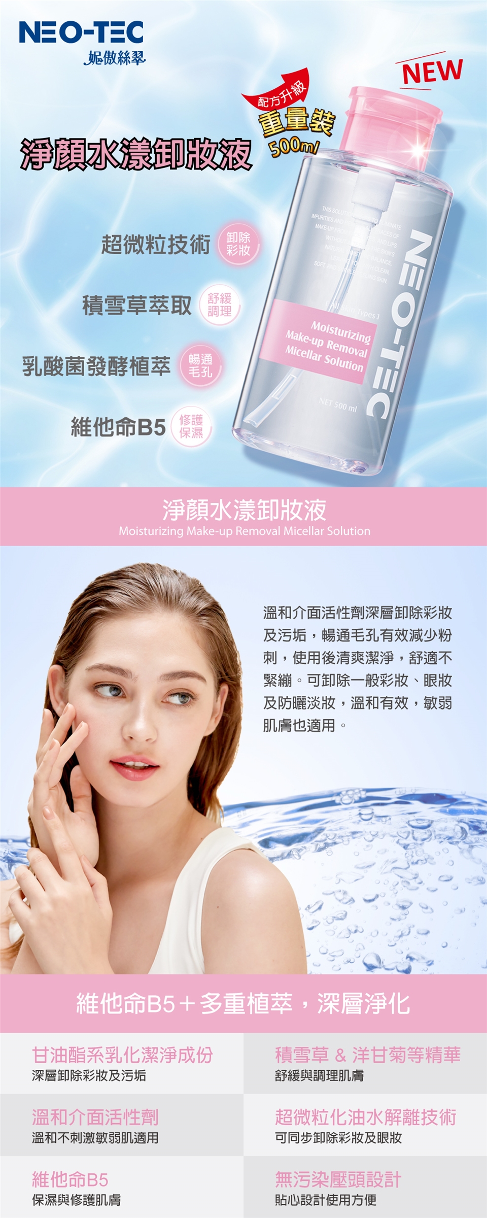 淨顏水漾卸妝液 重量裝500ml