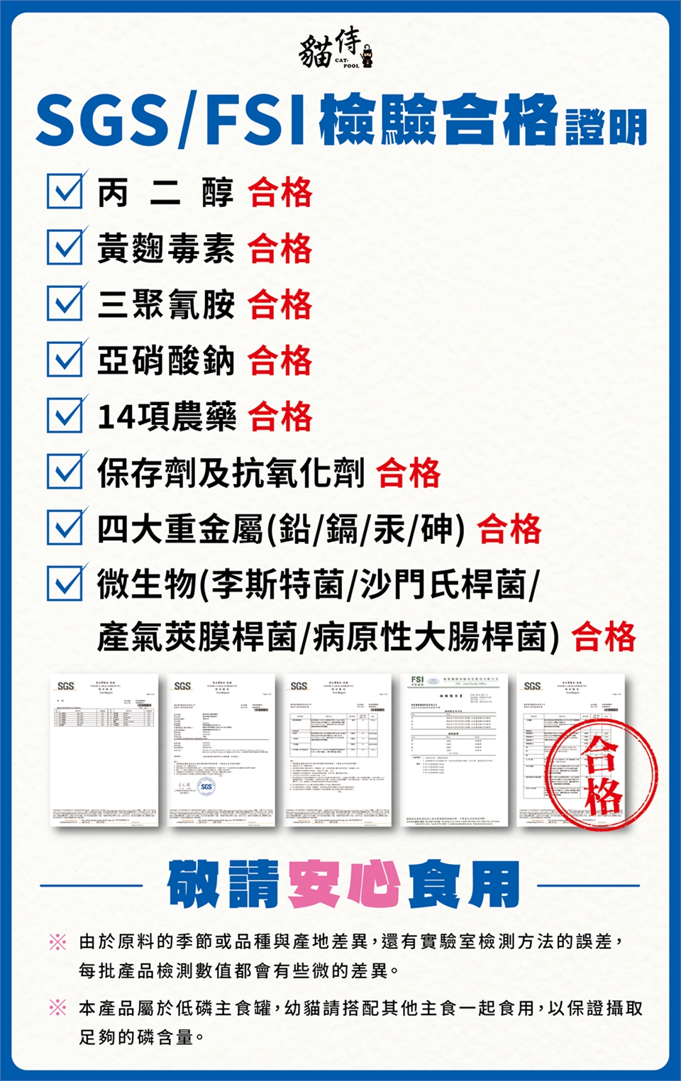 成份:鱈魚.土魠魚.鰹魚.魚油.洋車前子.碳酸鈣.牛磺酸.葡萄糖胺.軟骨素.鱉蛋粉.金盞花萃取.貓薄荷.綜合胺基酸.維生素A.維生素D.維生素E.礦物質