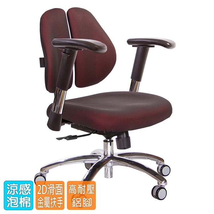 人體工學雙背設計,改善長時間座在椅子上,覺得腰部貼合度不足,有懸空或不夠沉穩的感覺,改良式的雙背背墊,除了完整包覆性外,更提供了『左右彈性』、『上下貼合』、『彈力緩衝』等特性,並有多國國際結構專利認證(台灣、德國、日本、美國、中國等),原廠專利、技術100% Made in Taiwan台灣製造。