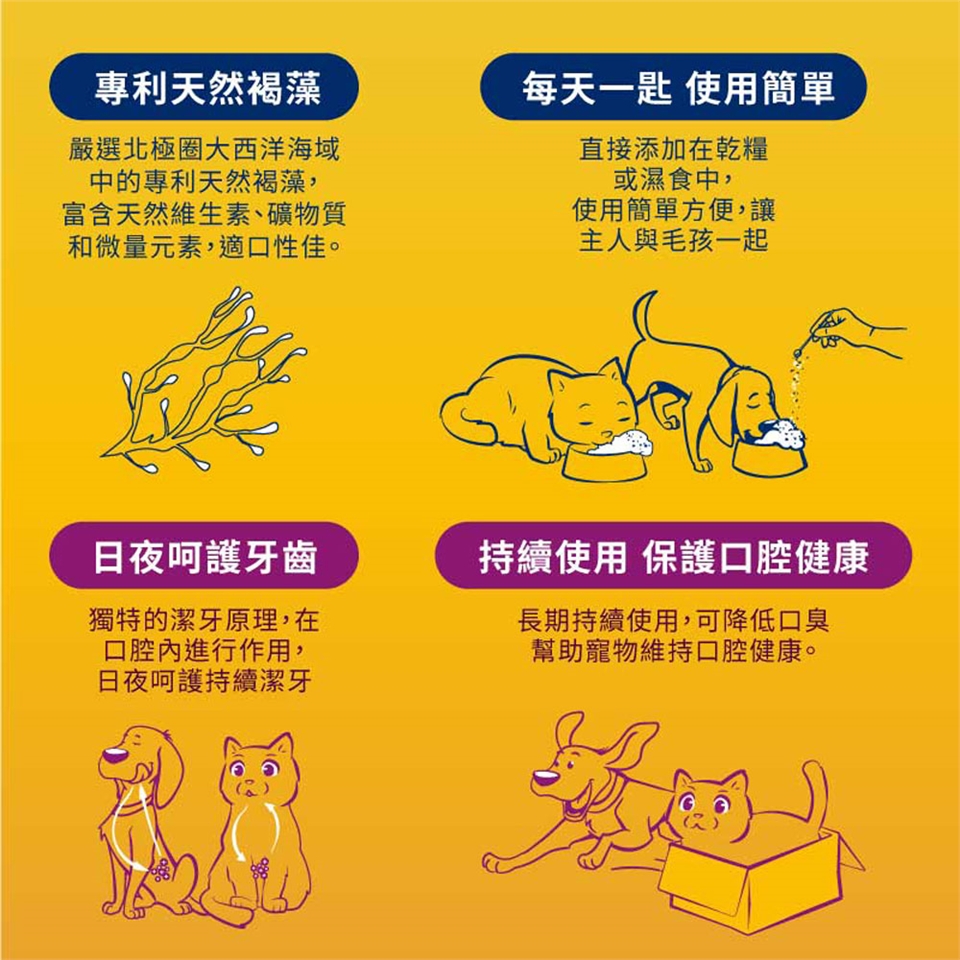 每日一次,直接添加於寵物食物(乾食/半乾/濕食)中