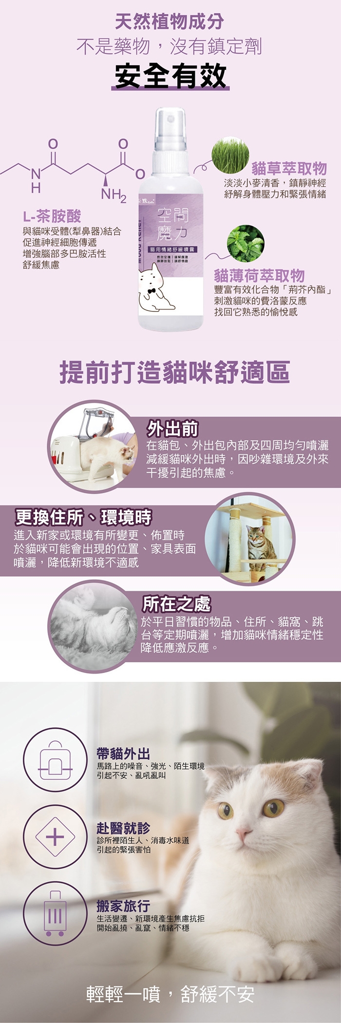 純水、貓草萃取物、貓薄荷萃取物、L-茶胺酸、食用級檸檬酸
