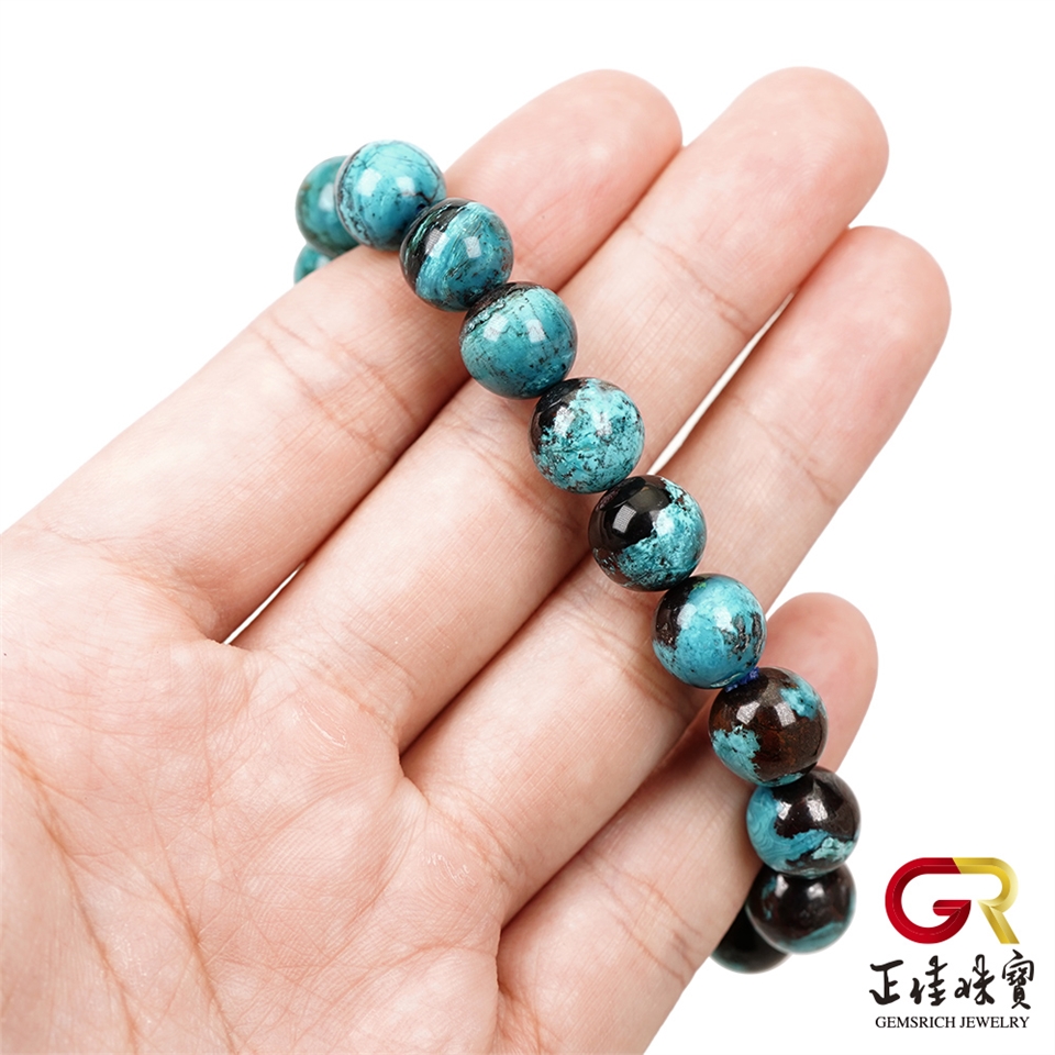 主角:鳳凰石 埃及藍聚寶盆 10.4-10.8mm 鳳凰石手珠|日本彈力繩