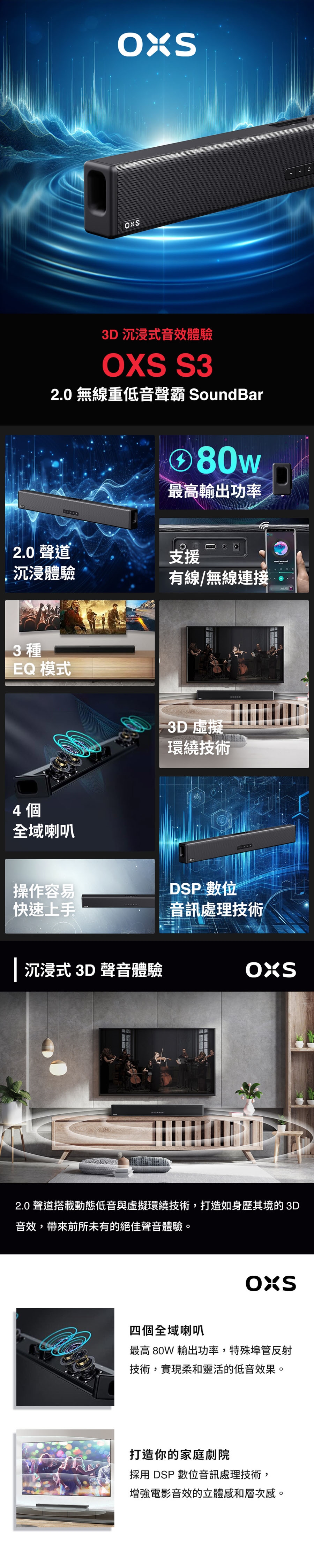 OXS S3 2.0 無線重低音聲霸SoundBar