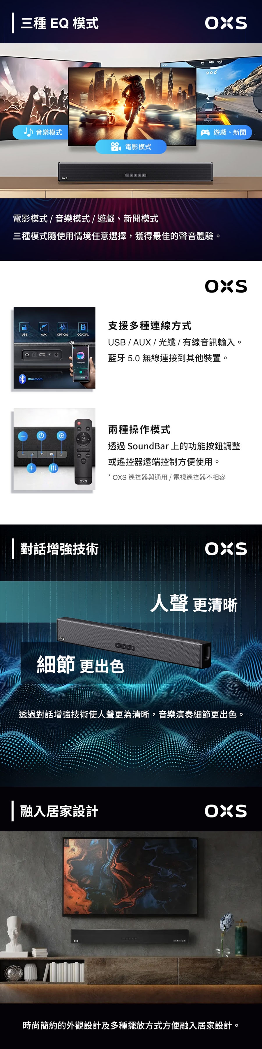 產品名稱:OXS S3 2.0 無線重低音聲霸SoundBar