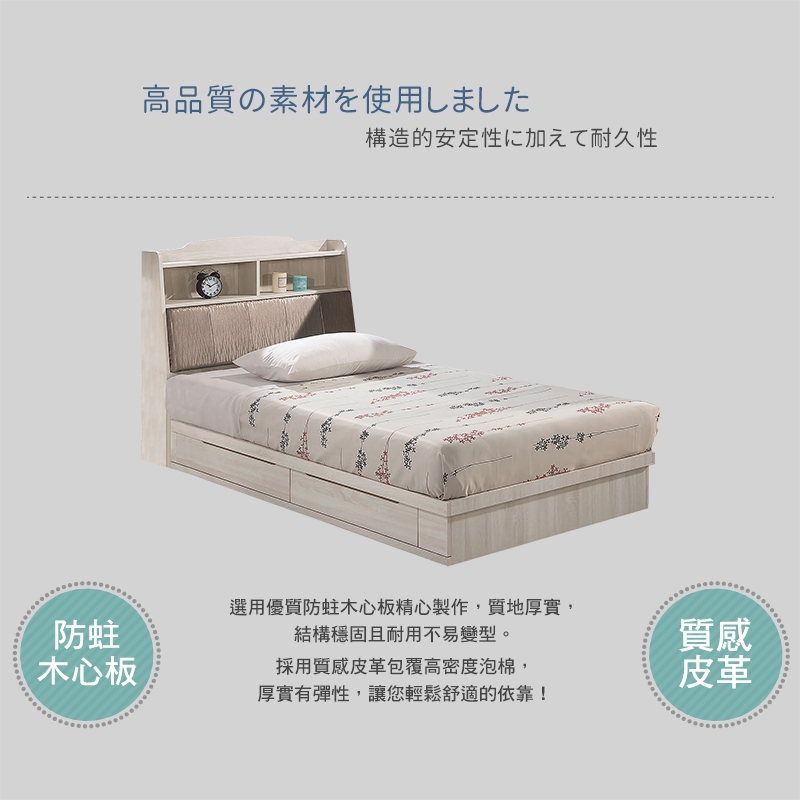 床頭可掀開置物設計,可收納棉被、床單等,有效利用空間不浪費!