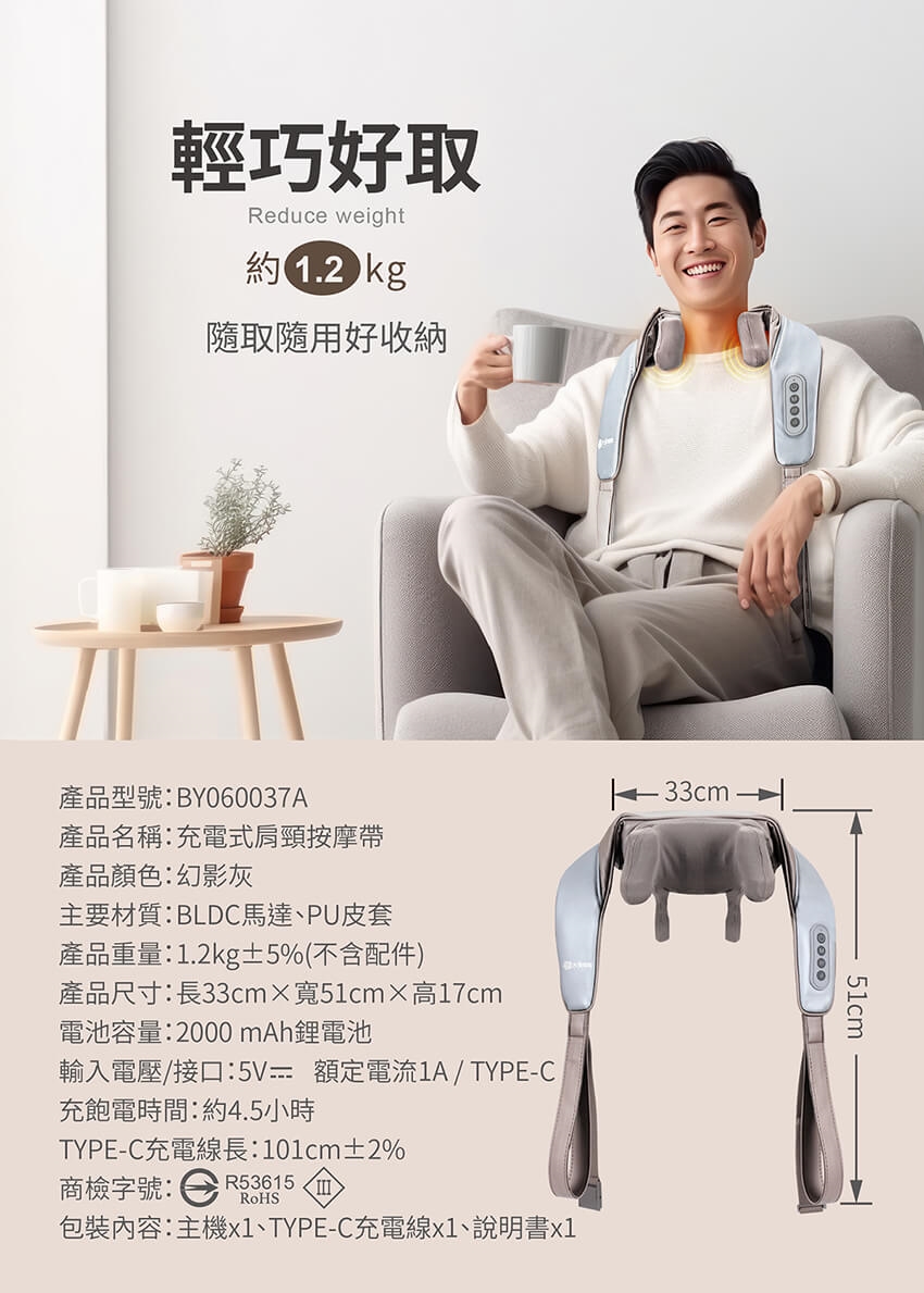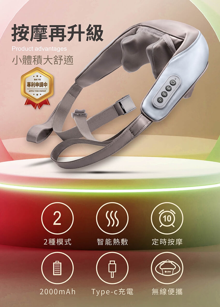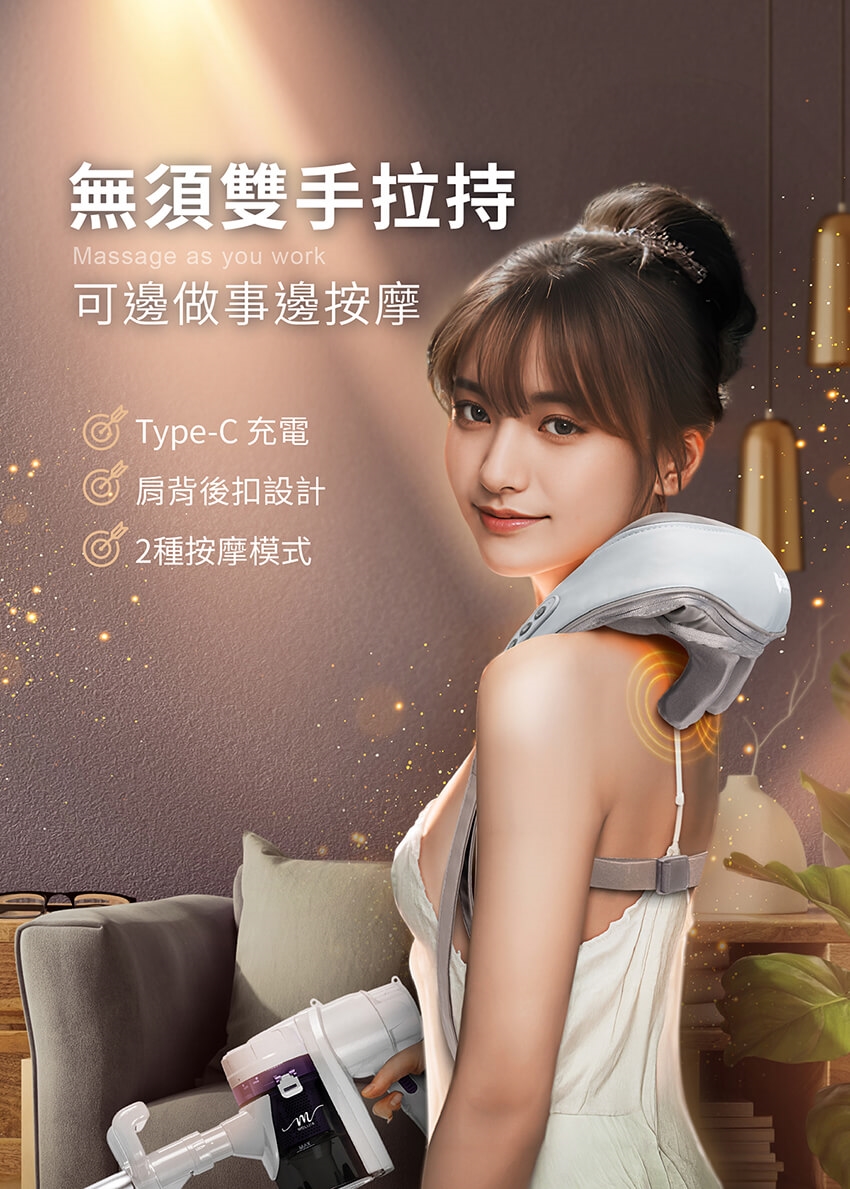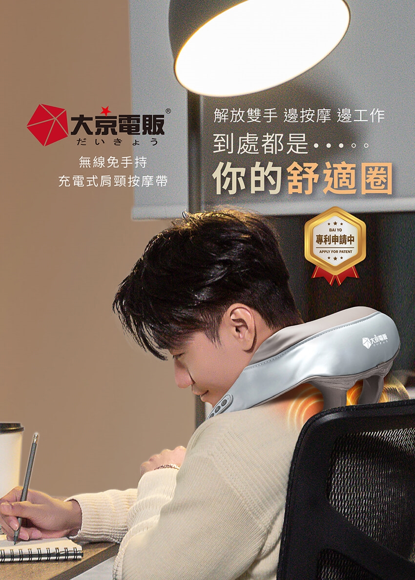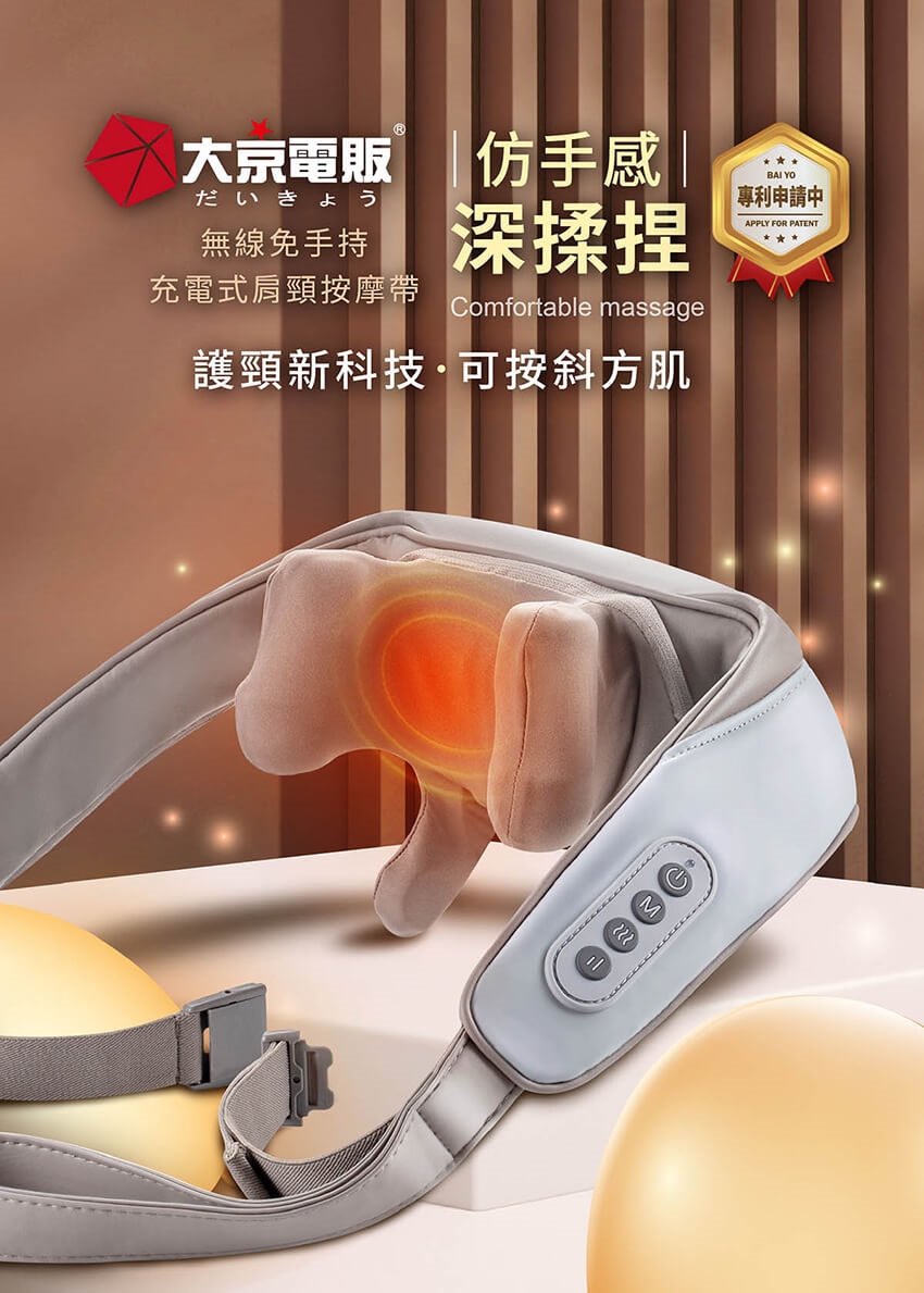 產品名稱:【DAJING 大京電販】無線免手持/充電式肩頸按摩帶
