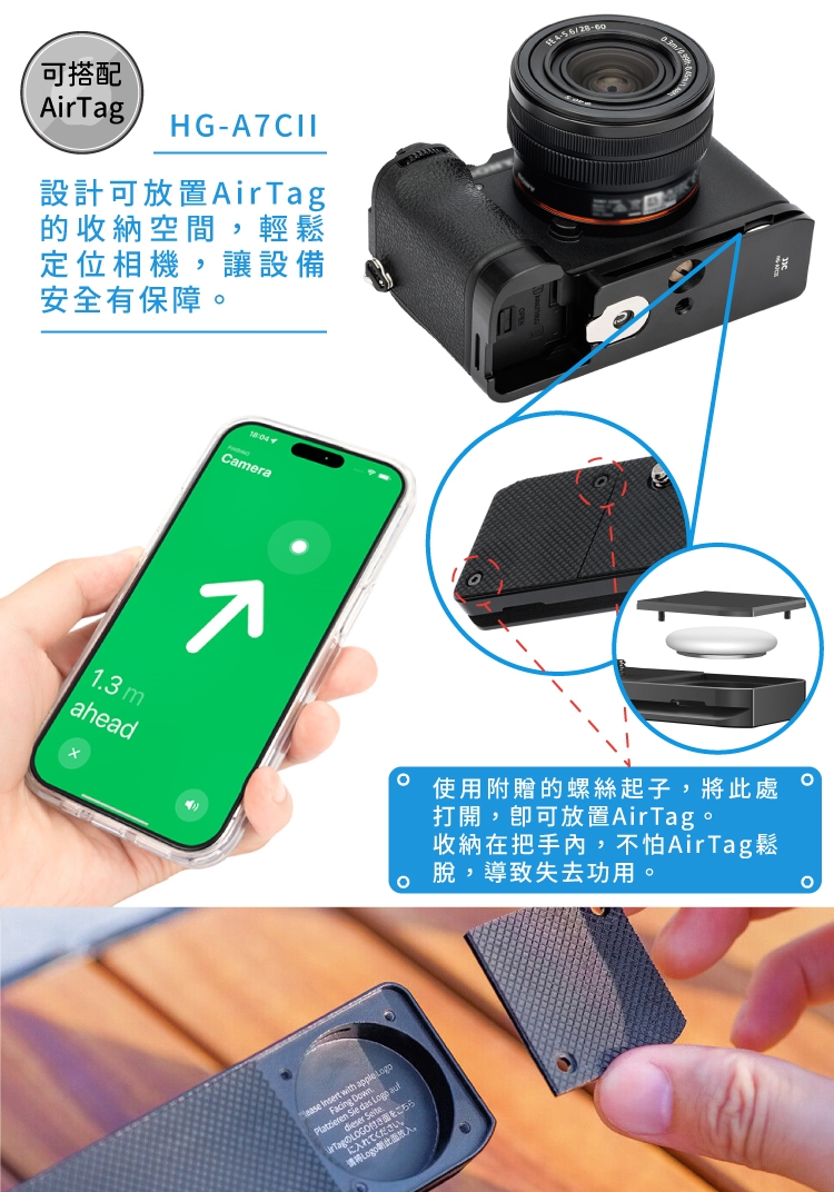 ●設計可放置AirTag的收納空間,輕鬆定位相機,讓設備安全有保障。